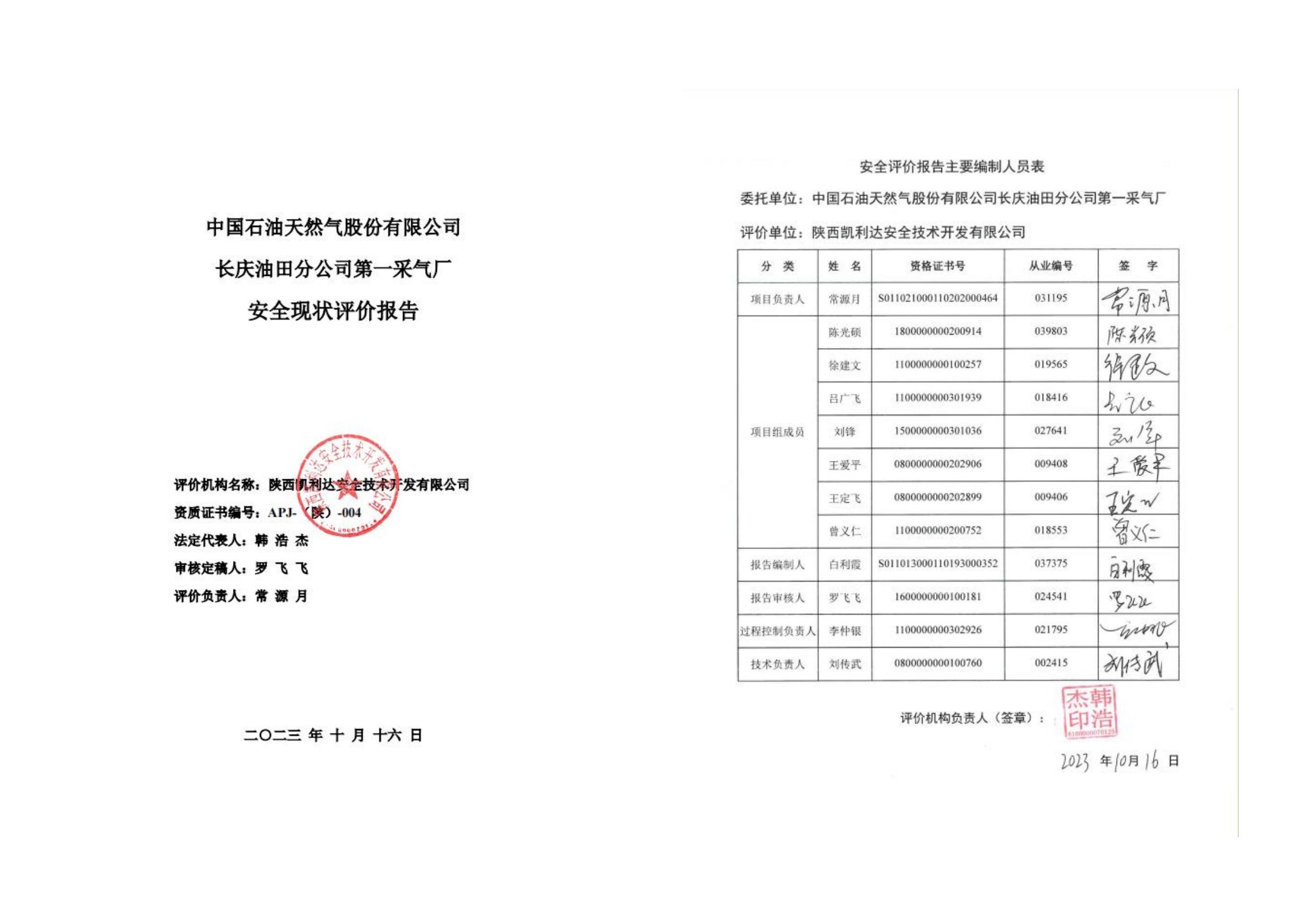 KLDAP[2023]-3.13--長慶油田分公司第一采氣廠安全現狀評價報告-網上公示