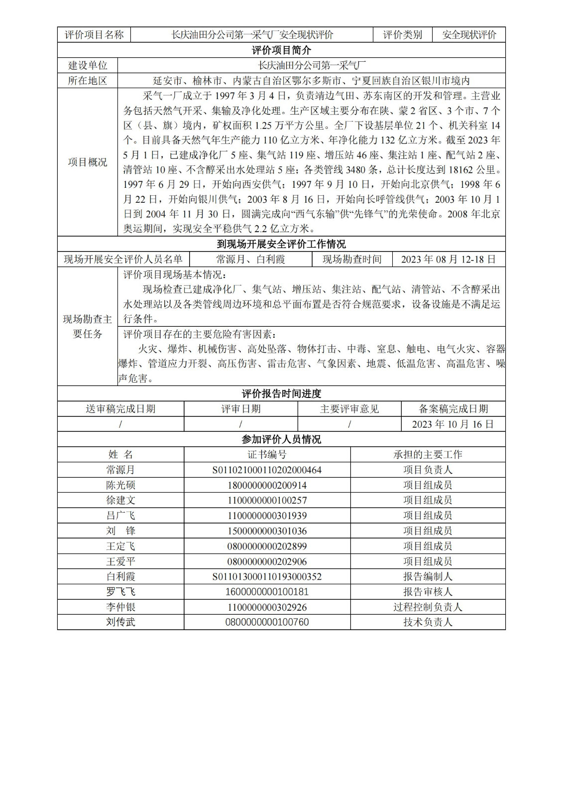 KLDAP[2023]-3.12長慶油田分公司第一采氣廠2021年產能建設工程(陜西境內)安全驗收評價-網上公示