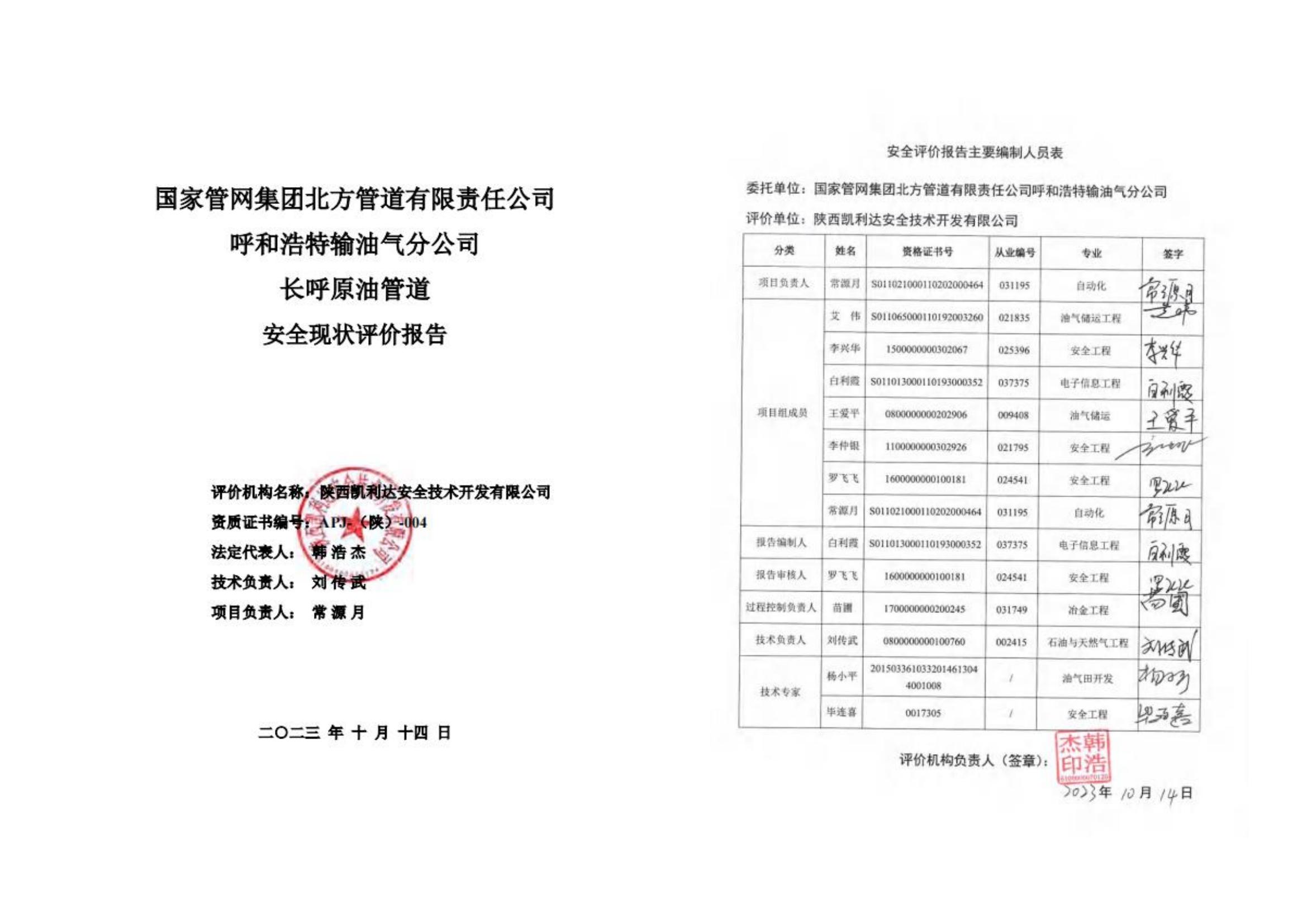 KLDAP[2023]-3.14--國家管網(wǎng)集團北方管道有限責(zé)任公司呼和浩特輸油氣分公司安全現(xiàn)狀評價報告-網(wǎng)上公示