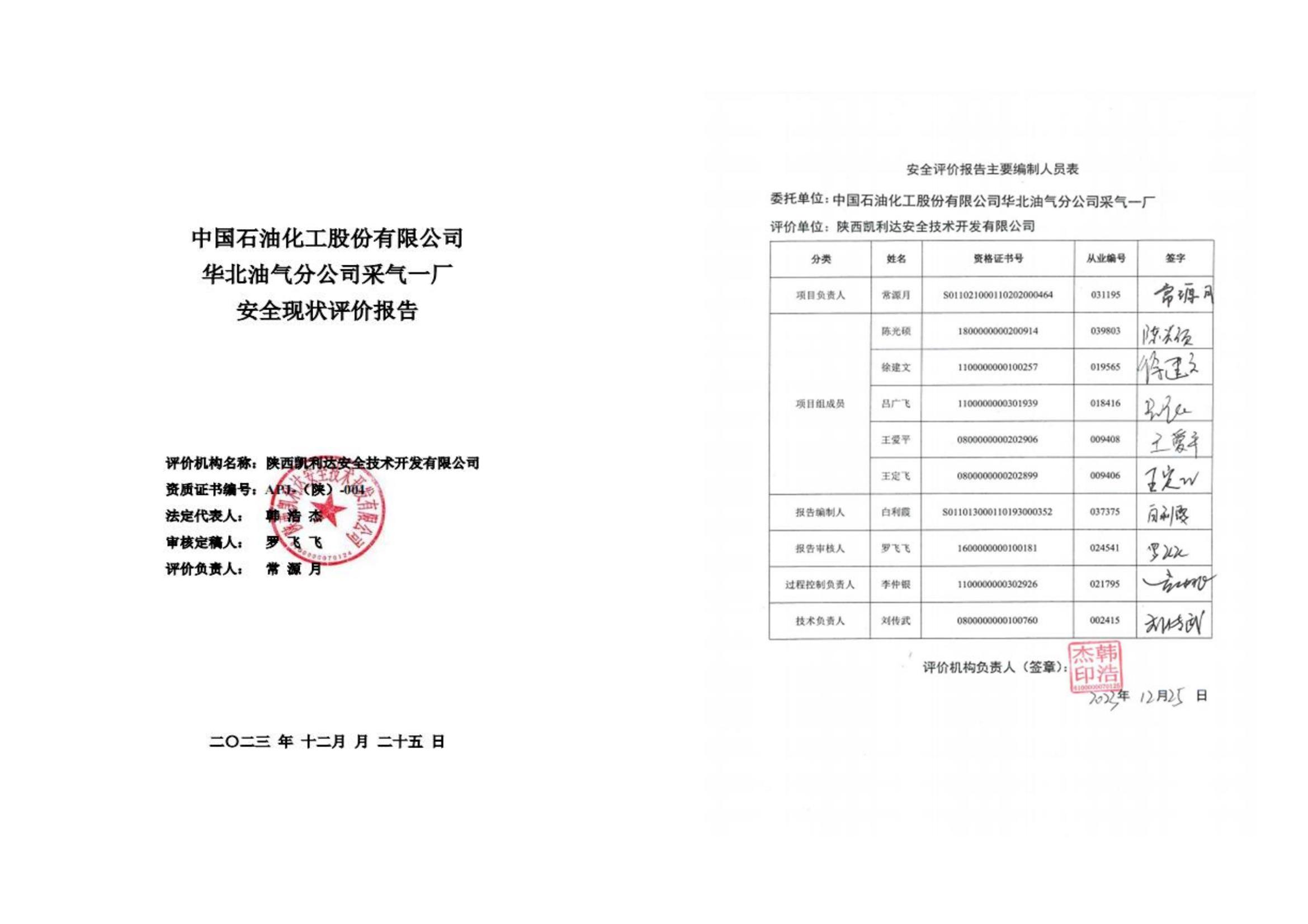 KLDAP[2023]-3.15--華北油氣分公司采氣一廠安全現(xiàn)狀評價(jià)報(bào)告-網(wǎng)上公示