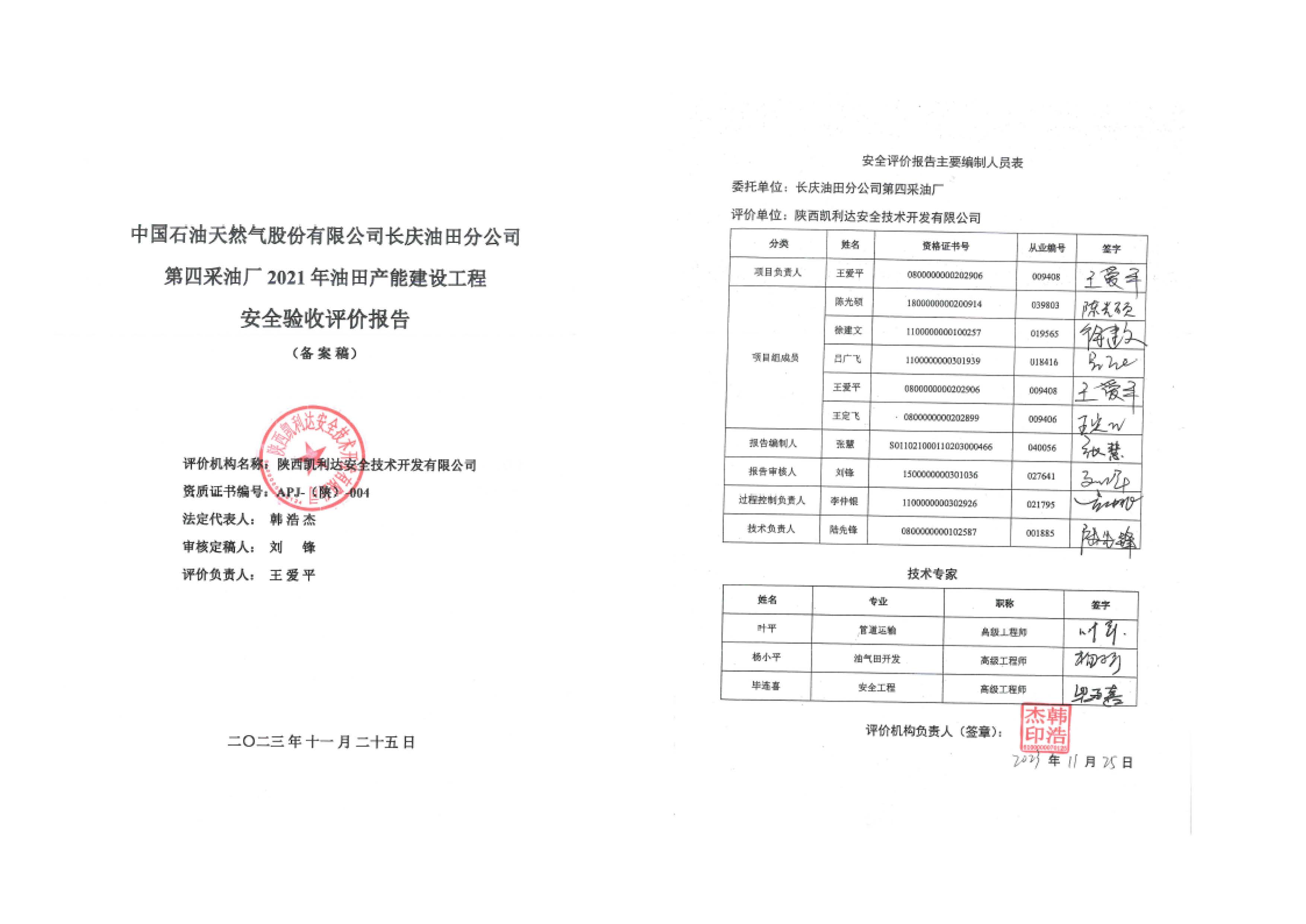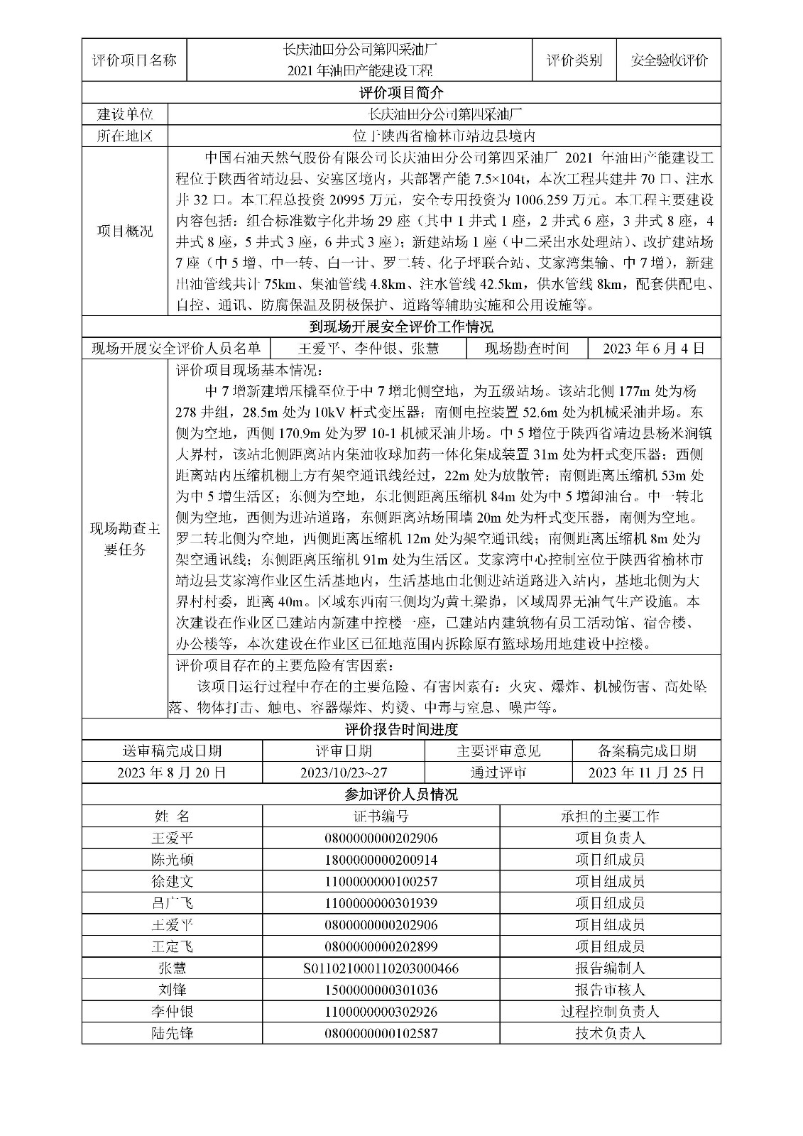 KLDAP[2023]-4.8--長(zhǎng)慶油田分公司第四采油廠2021年產(chǎn)能建設(shè)工程安全驗(yàn)收評(píng)價(jià)安全驗(yàn)收?qǐng)?bào)告公示