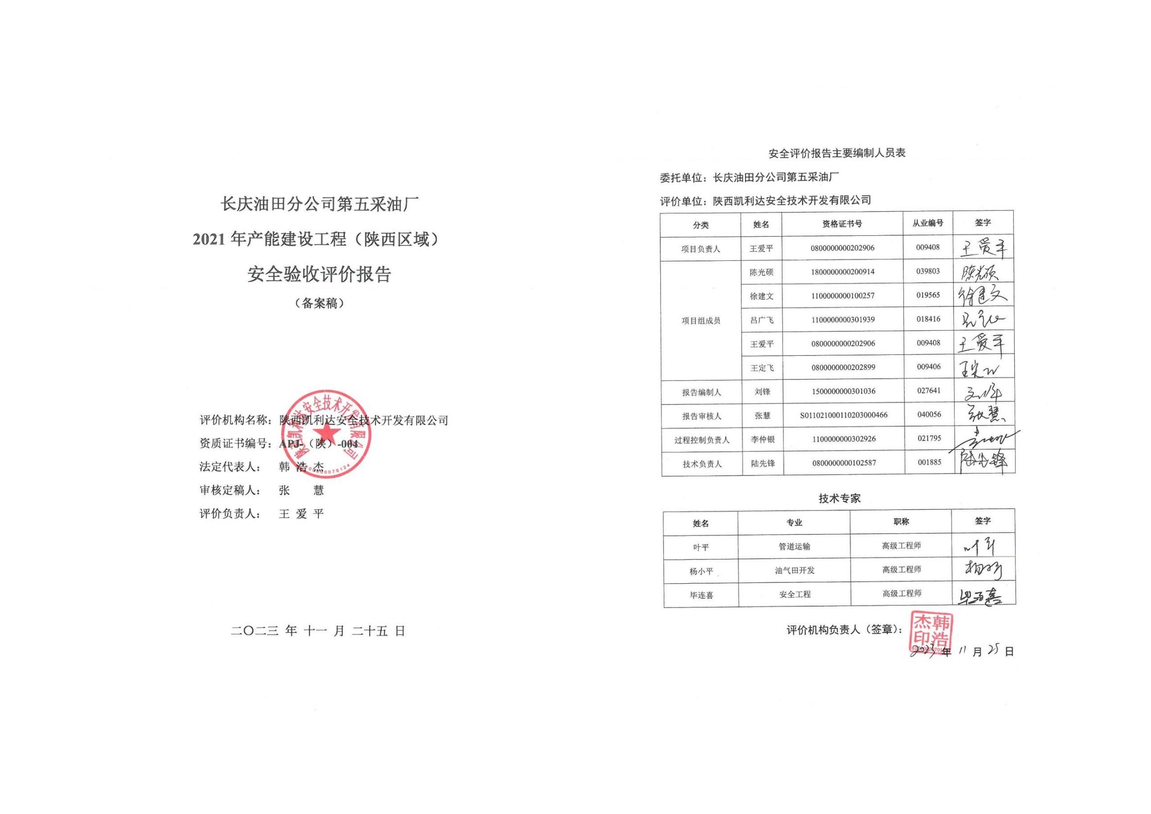 KLDAP[2023]-4.11--長(zhǎng)慶油田分公司第五采油廠2021年產(chǎn)能建設(shè)工程安全驗(yàn)收評(píng)價(jià)安全驗(yàn)收?qǐng)?bào)-網(wǎng)上公示
