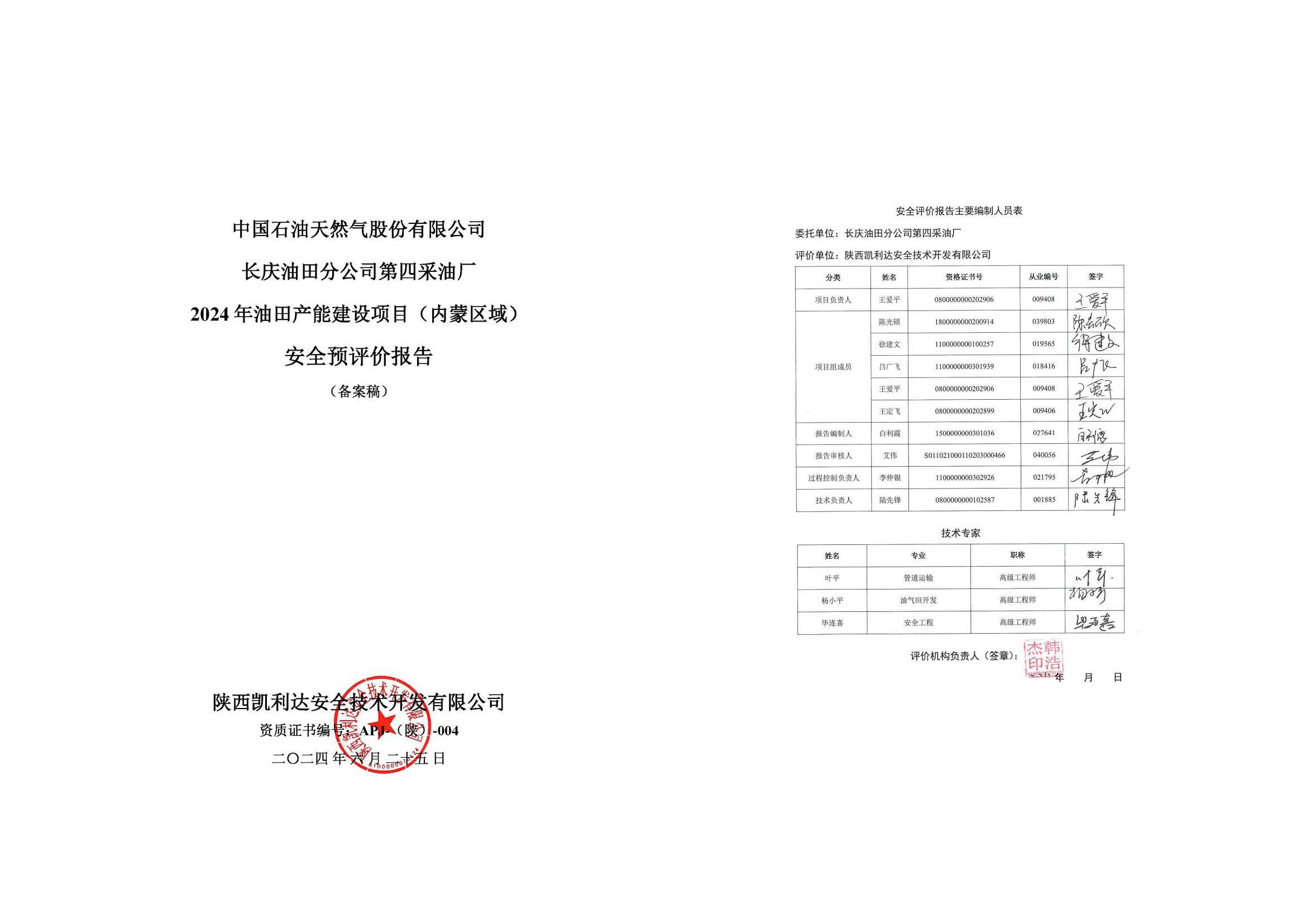 KLDAP[2024]-3.4 中國石油天然氣股份有限公司長慶油田分公司第四采油廠2024年油田產(chǎn)能建設(shè)項目(內(nèi)蒙區(qū)域)安全預(yù)評價