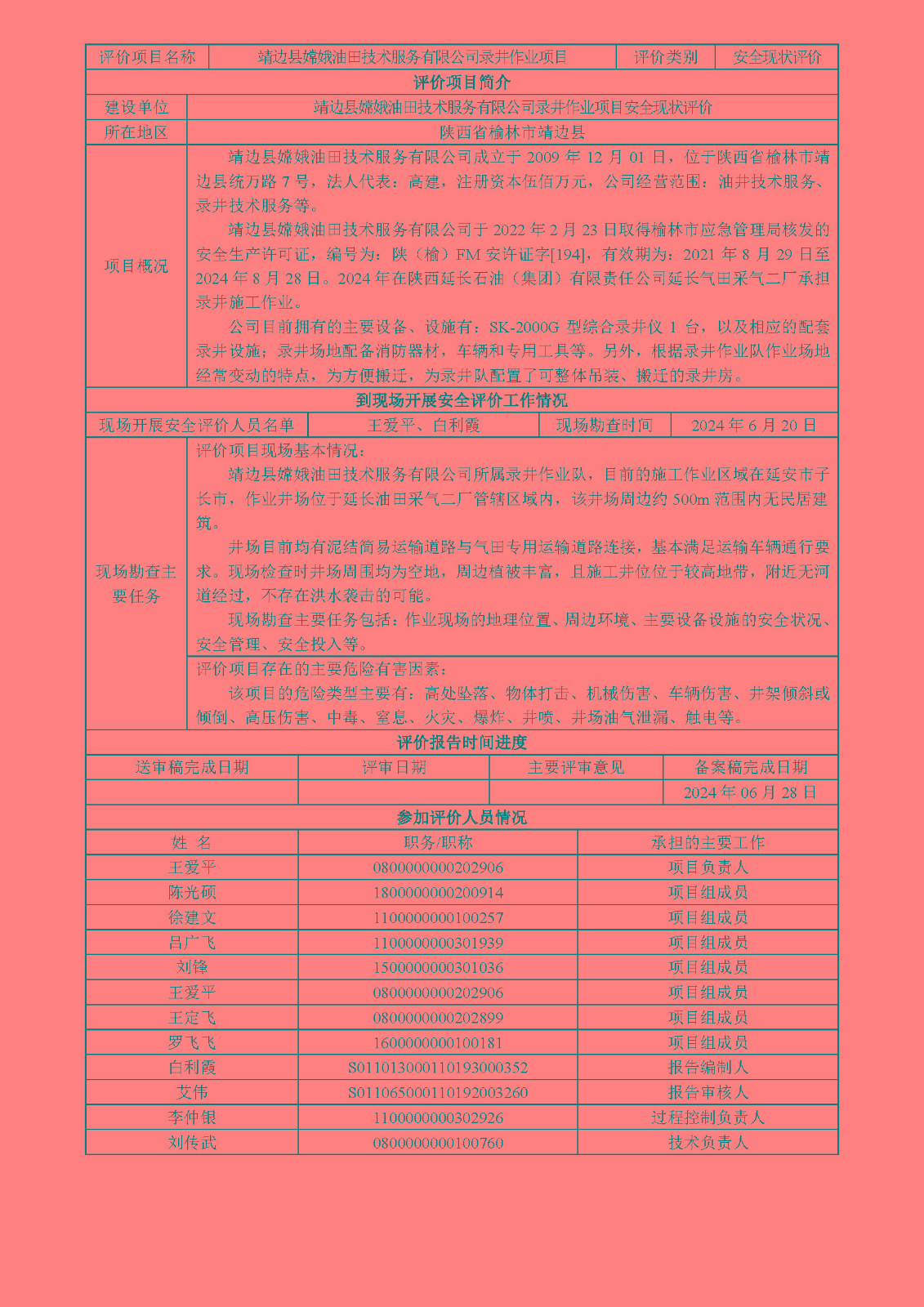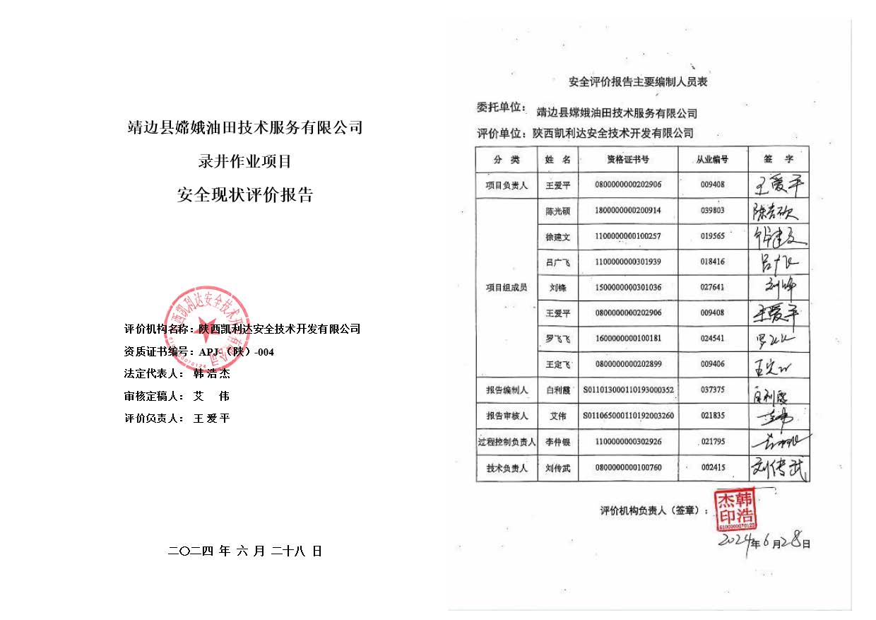 KLDAP[2024]-3.5 靖邊縣嫦娥油田技術(shù)服務(wù)有限公司錄并作業(yè)項目安全現(xiàn)狀評價報告