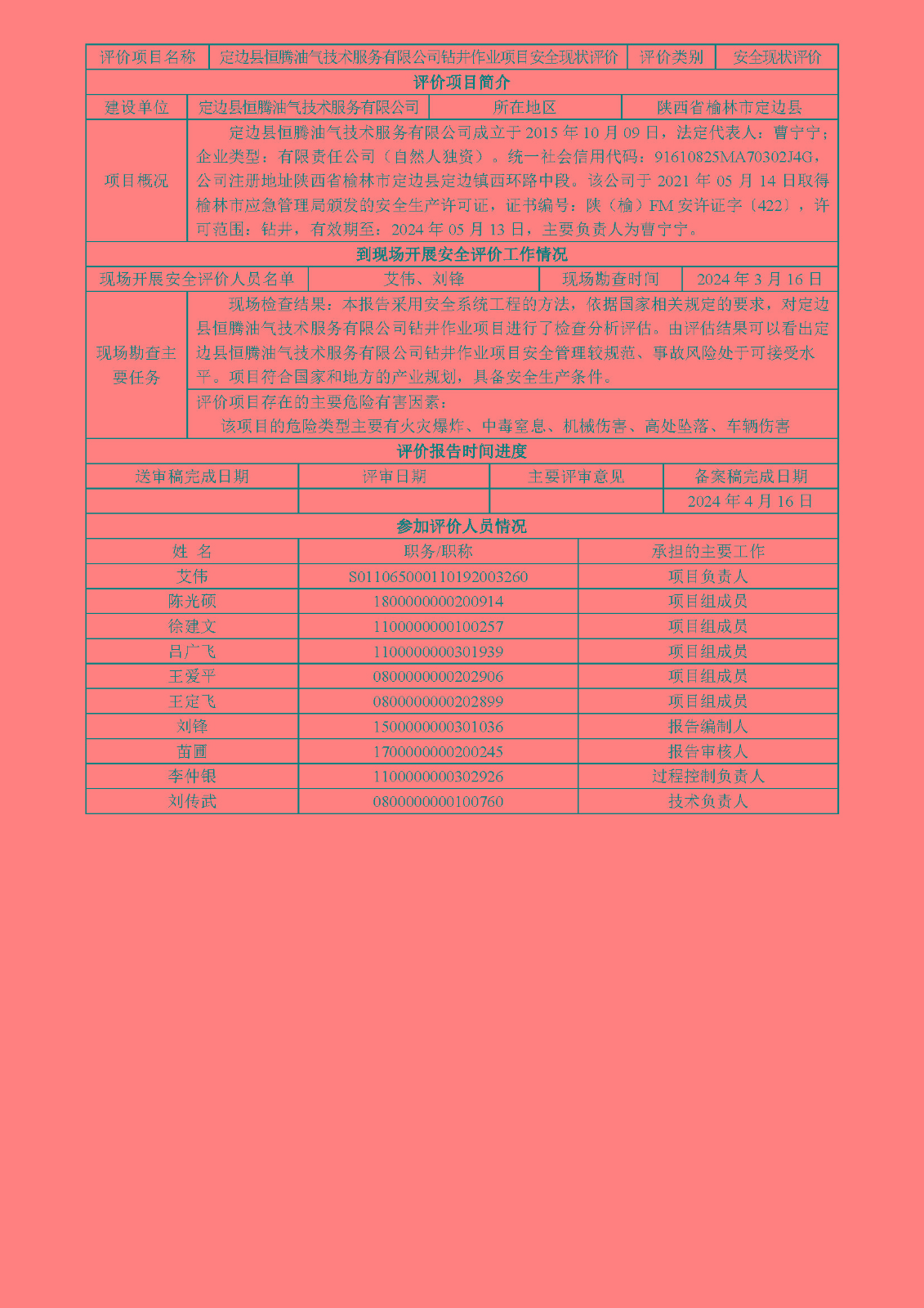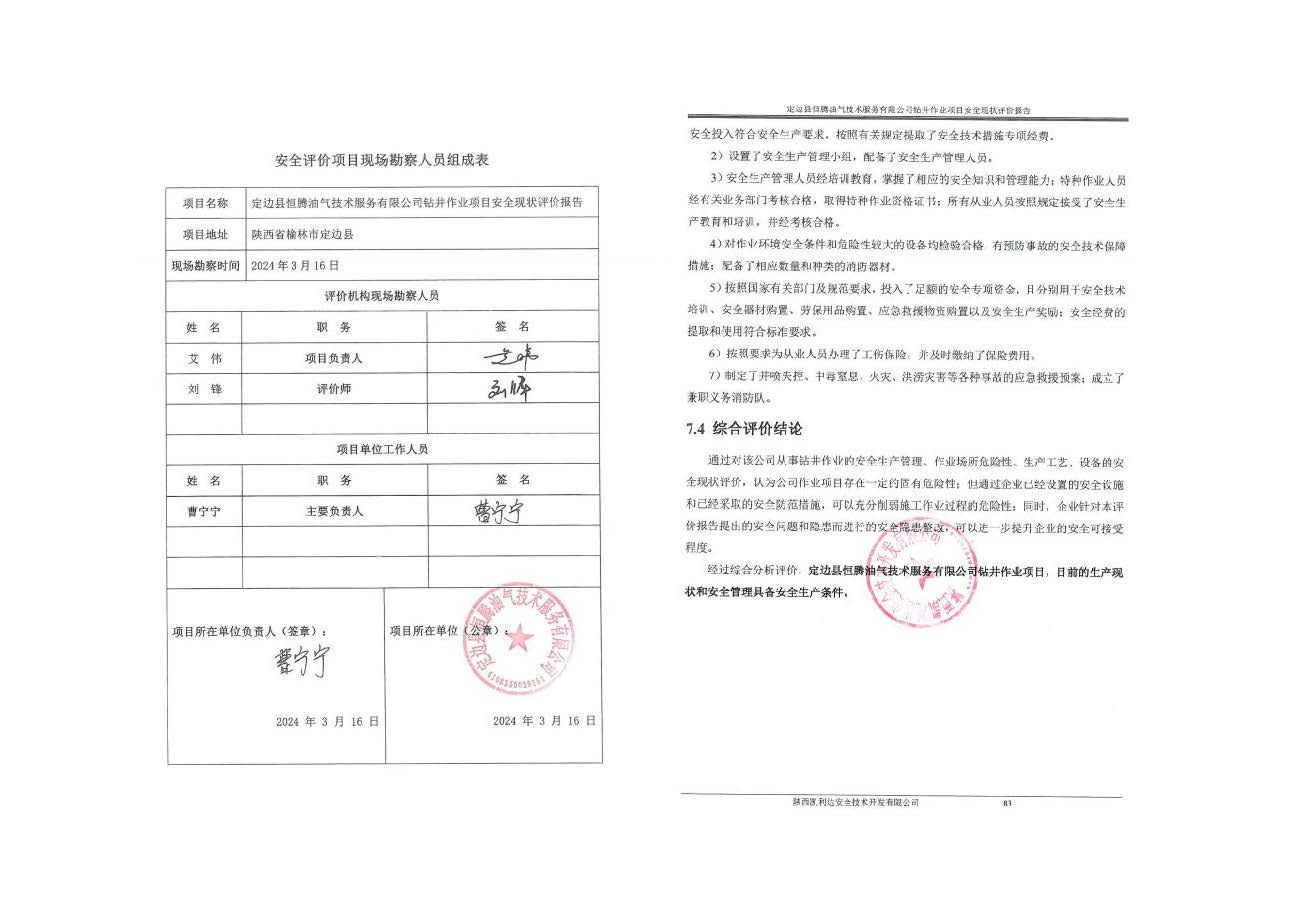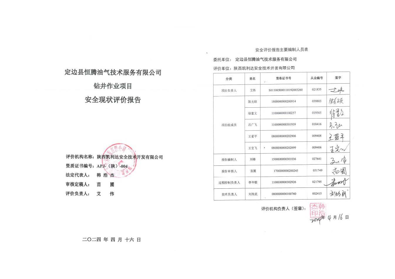 KLDAP[2024]-1.6 定邊縣恒騰油氣技術服務有限公司鉆井作業(yè)項目安全現(xiàn)狀評價