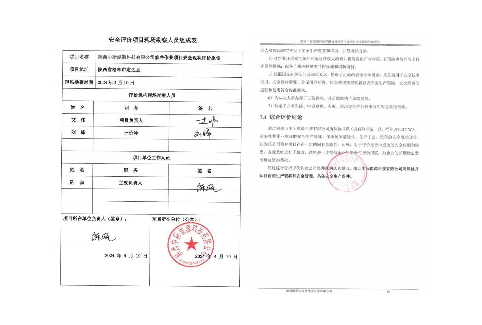 KLDAP[2024]-1.7 陜西中際能源科技有限公司修井項目安全現(xiàn)狀評價