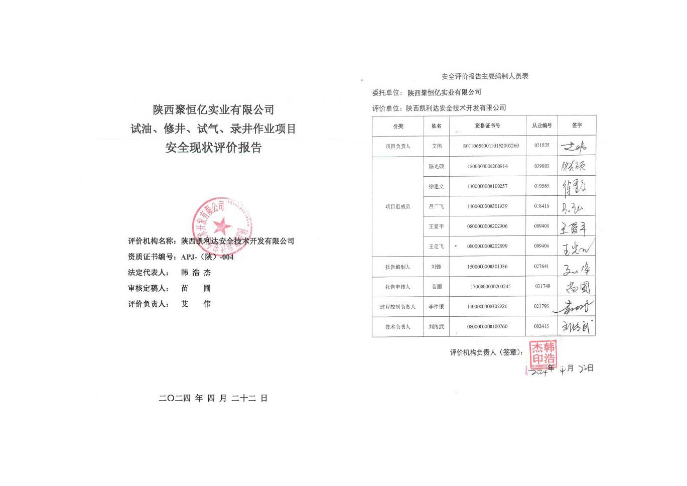 KLDAP[2024]-1.8 陜西聚恒億實(shí)業(yè)有限公司試油、修井、試氣、錄井作業(yè)項(xiàng)目安全現(xiàn)狀評(píng)價(jià)