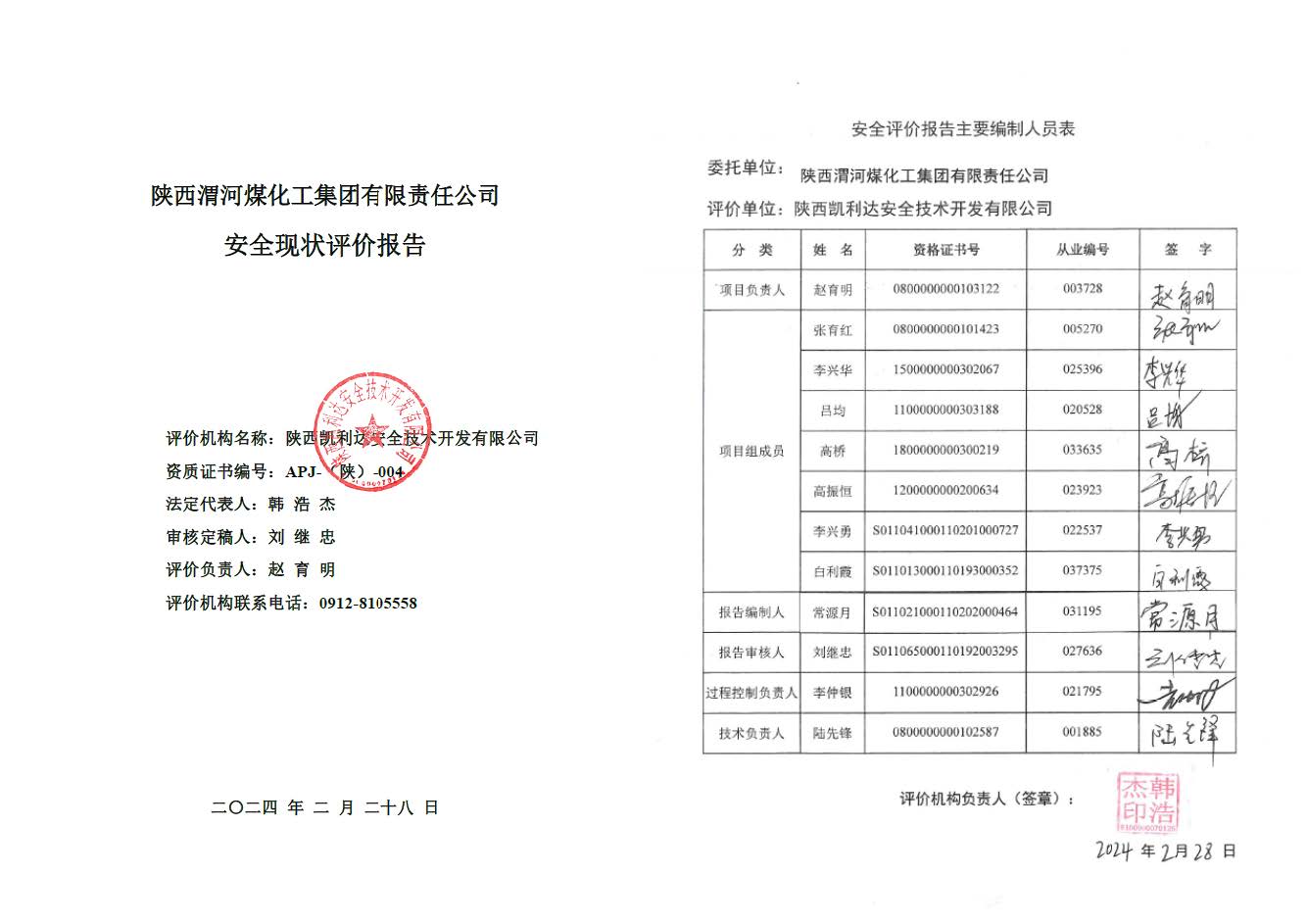 KLDAP[2024]-2.3 陜西渭河煤化工集團(tuán)有限責(zé)任公司安全現(xiàn)狀評價