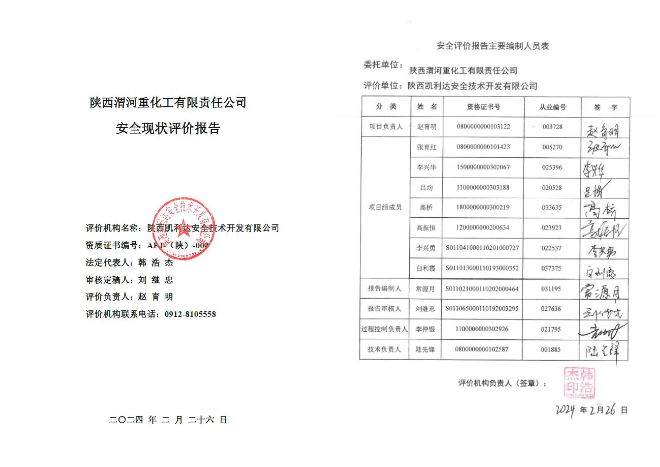 KLDAP[2024]-2.4 陜西渭河重化工有限責(zé)任公司安全現(xiàn)狀評價(jià)