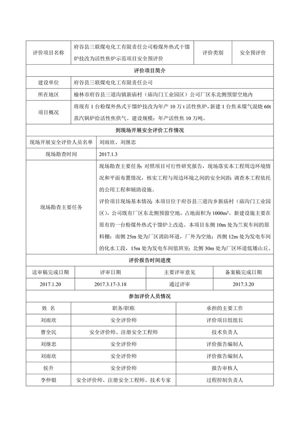 府谷縣三聯(lián)煤電化工有限責(zé)任公司粉煤外熱式干餾爐技改為活性焦?fàn)t