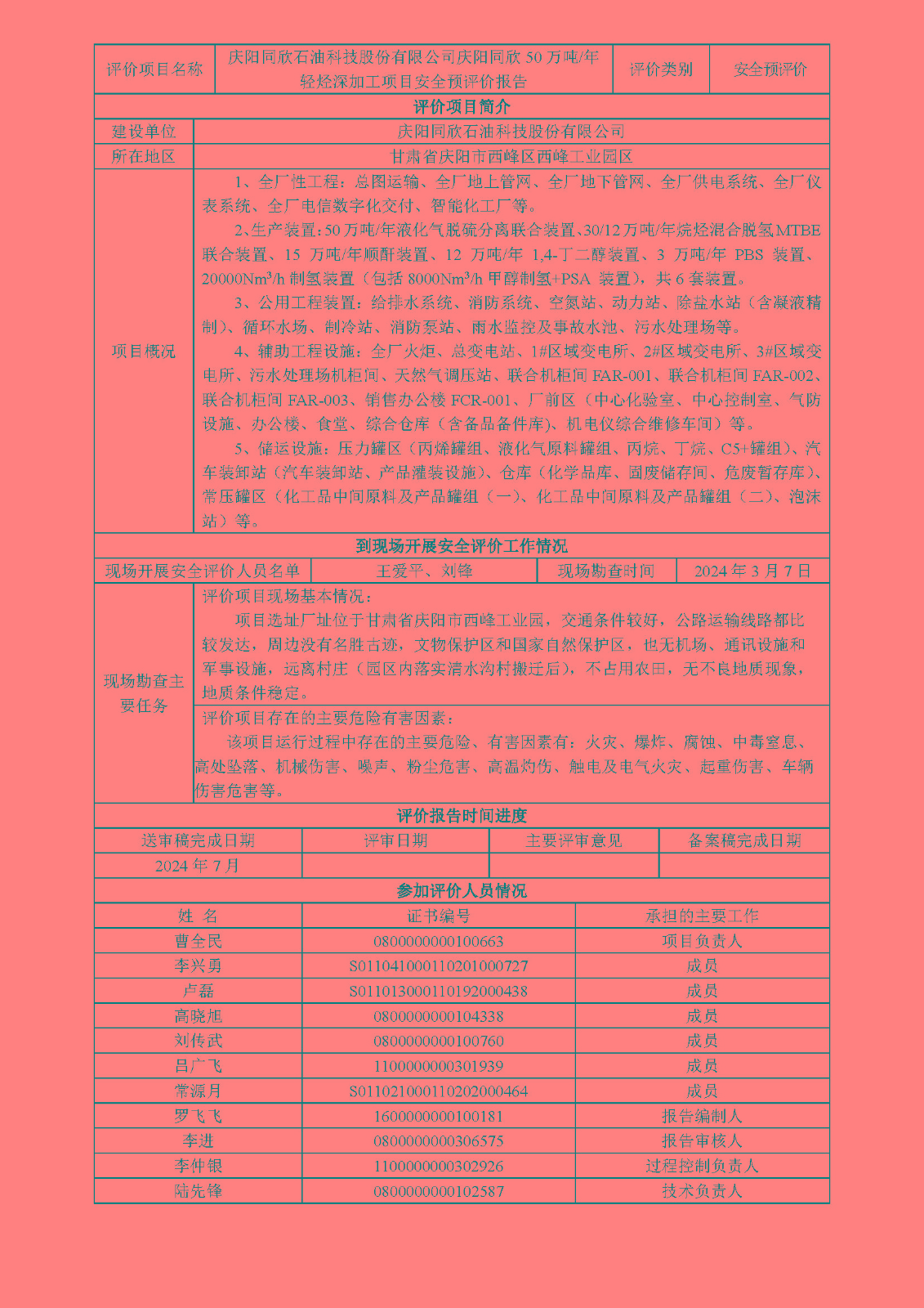 慶陽(yáng)同欣石油科技股份有限公司慶陽(yáng)同欣50萬(wàn)噸/年輕烴深加工項(xiàng)目安全預(yù)評(píng)價(jià)報(bào)告