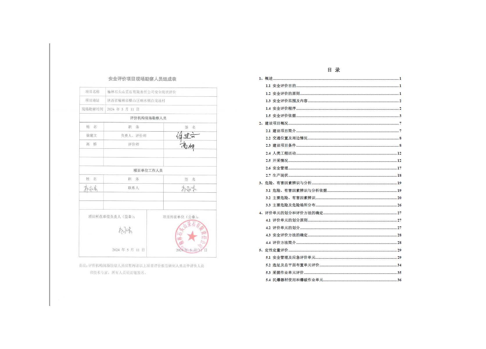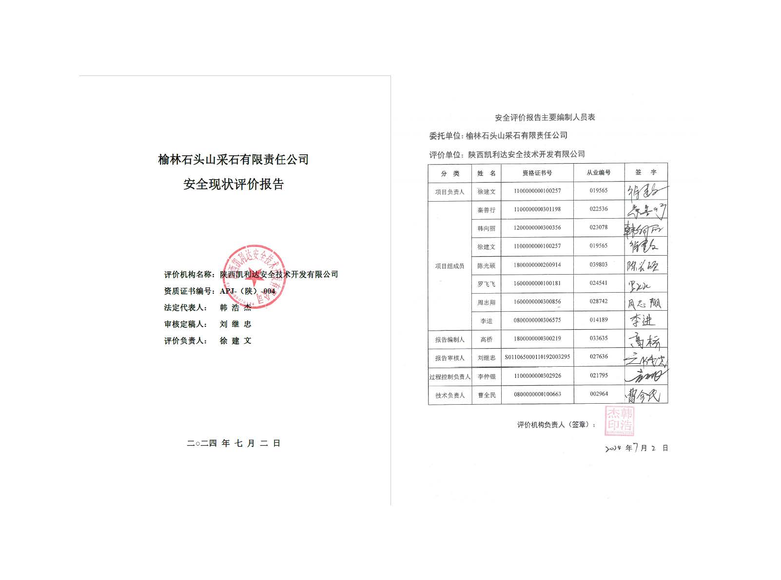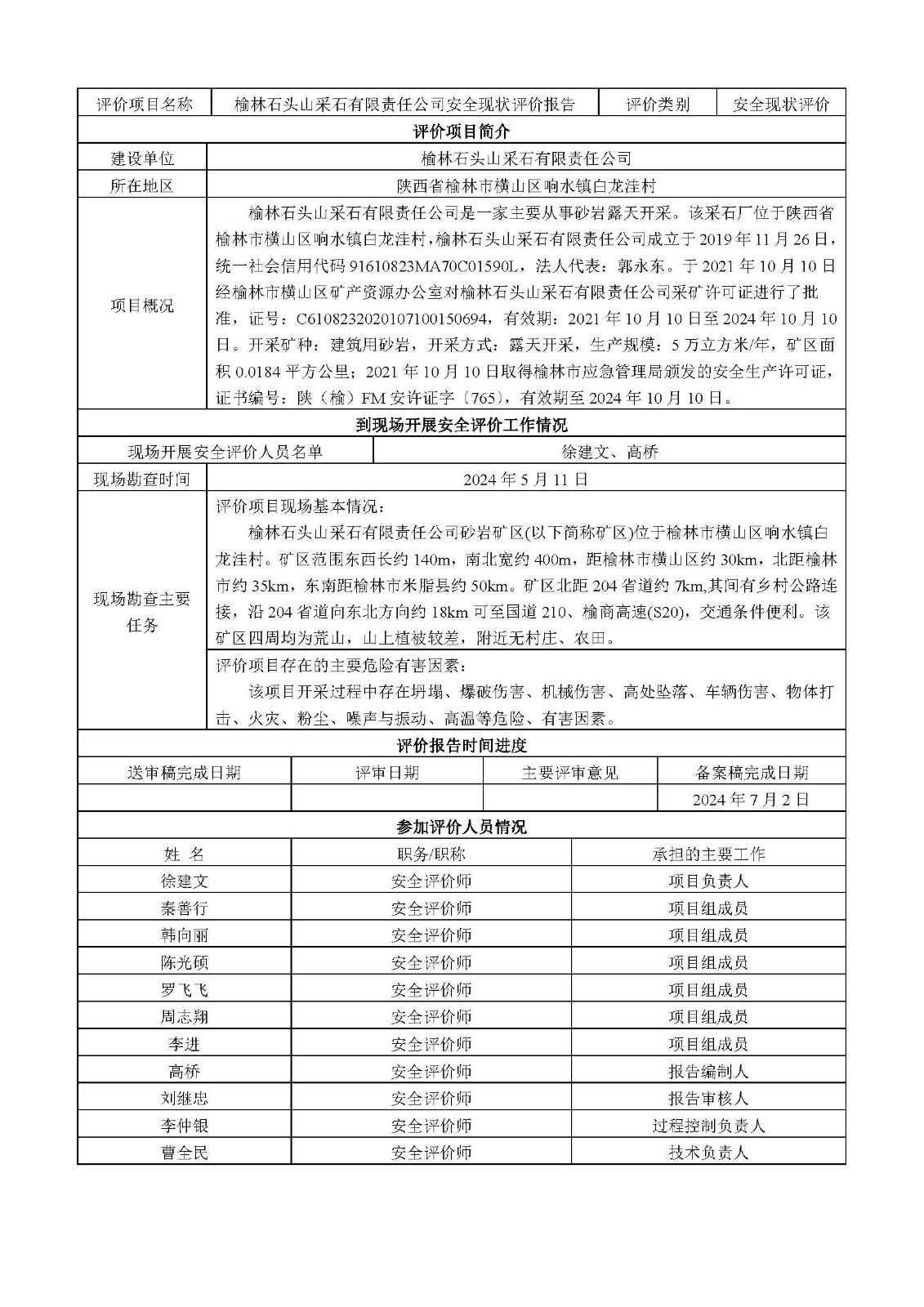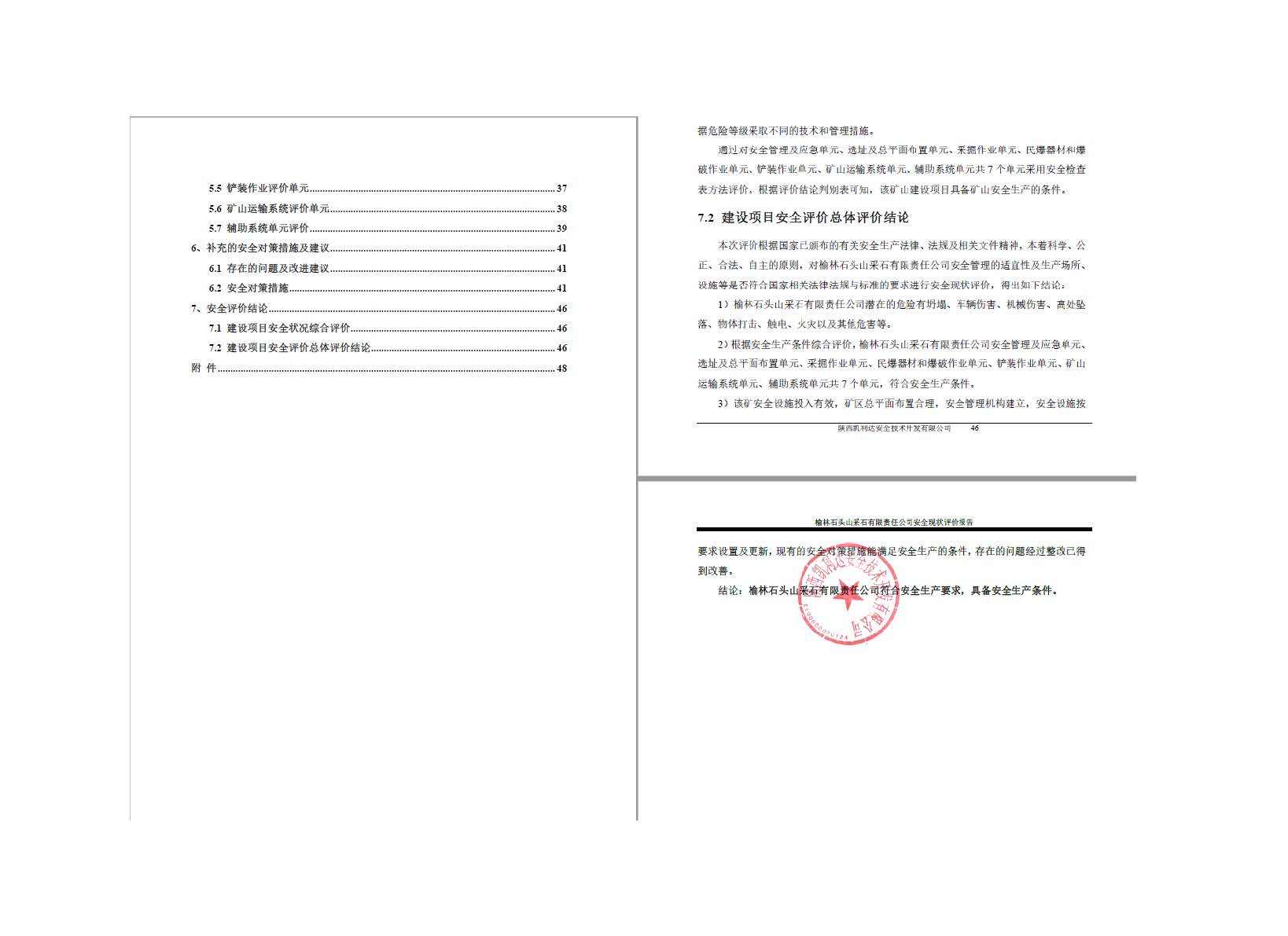 KLDAP[2024]-2.15 榆林橫山石頭山采石場責(zé)任公司安全現(xiàn)狀評價報告