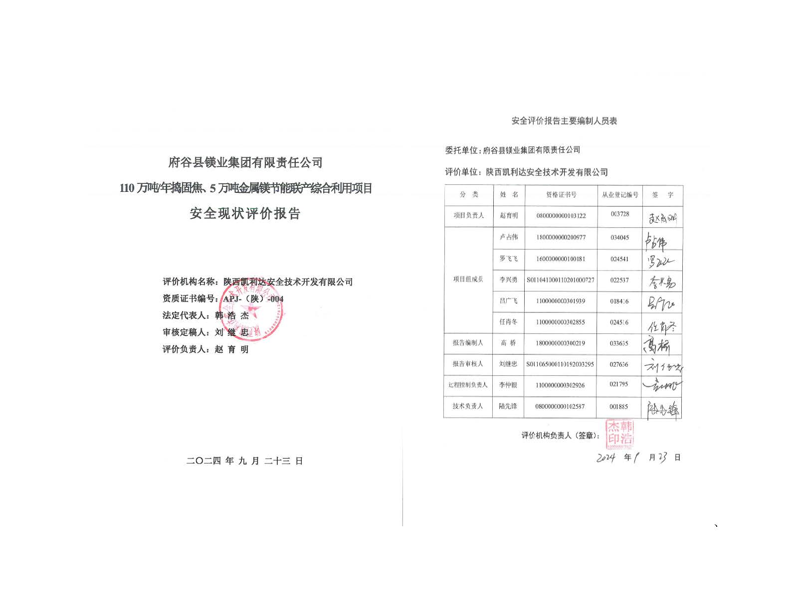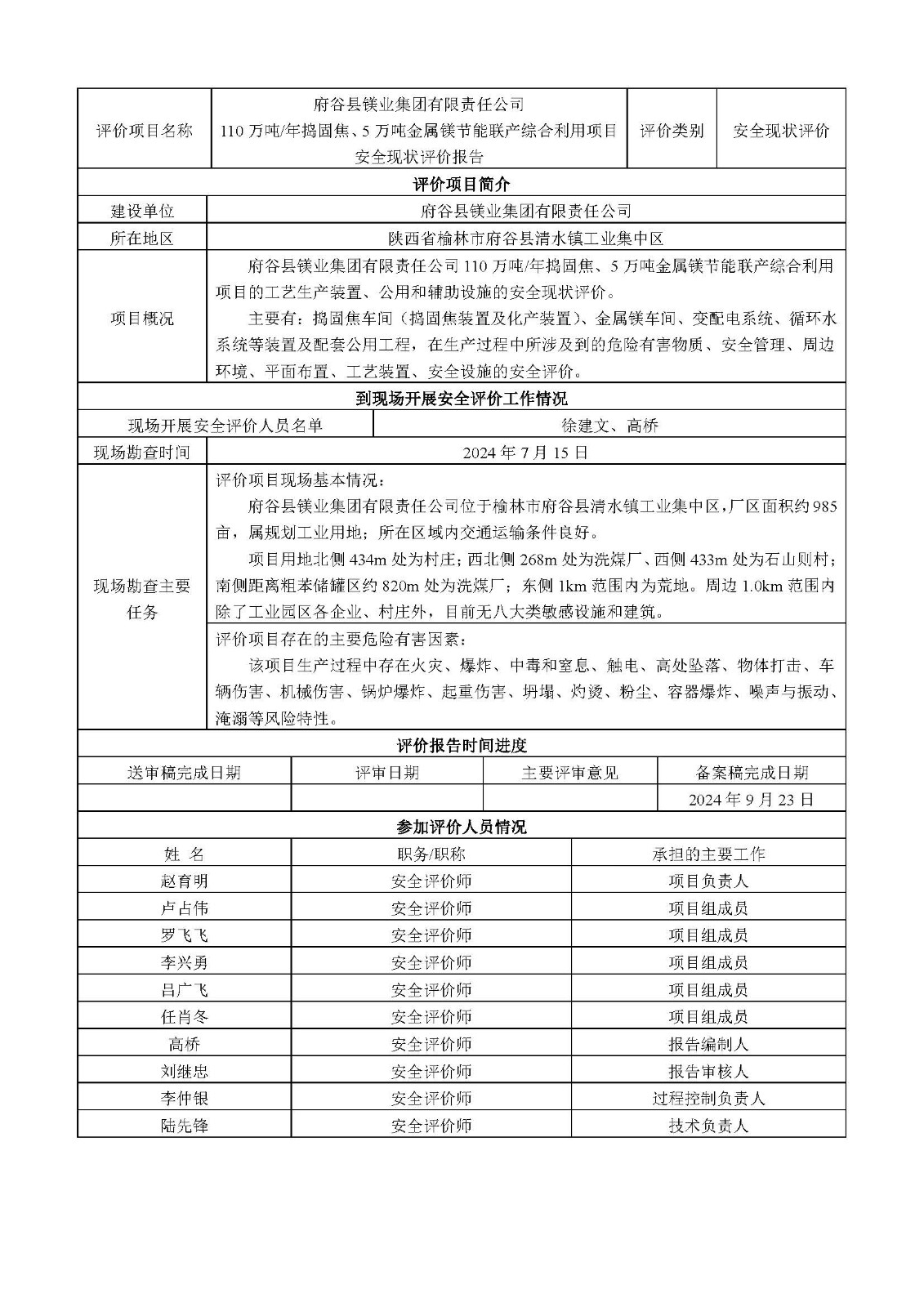 KLDAP[2024]-2.17府谷縣鎂業(yè)集團有限責任公司110萬噸年搗固焦、5萬噸金屬鎂節(jié)能聯(lián)產(chǎn)綜合利用項目