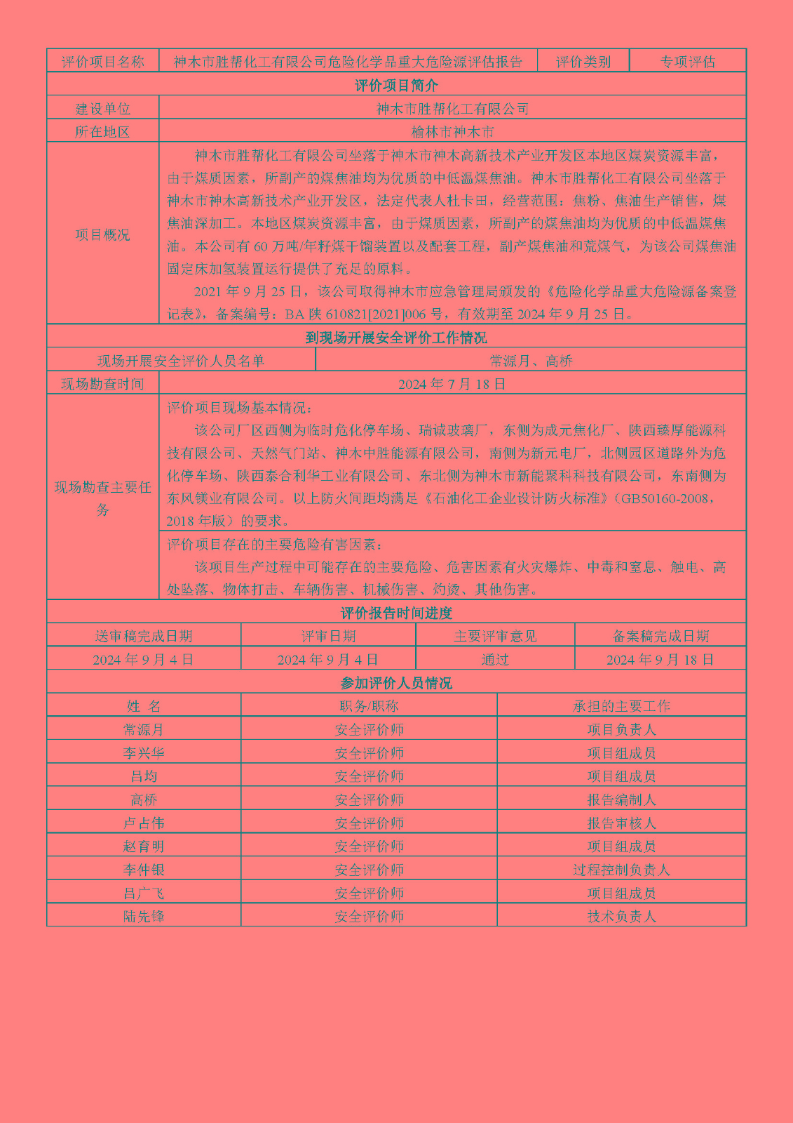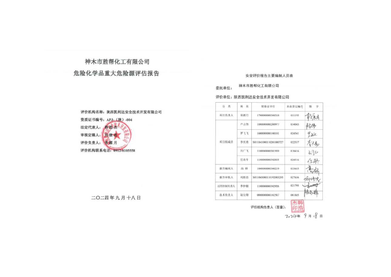 KLDAP[2024]-2.18 神木勝幫化工有限公司危險化學品重大危險源評估