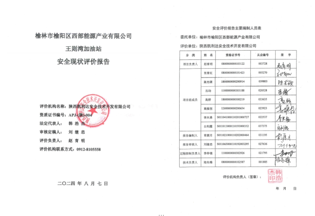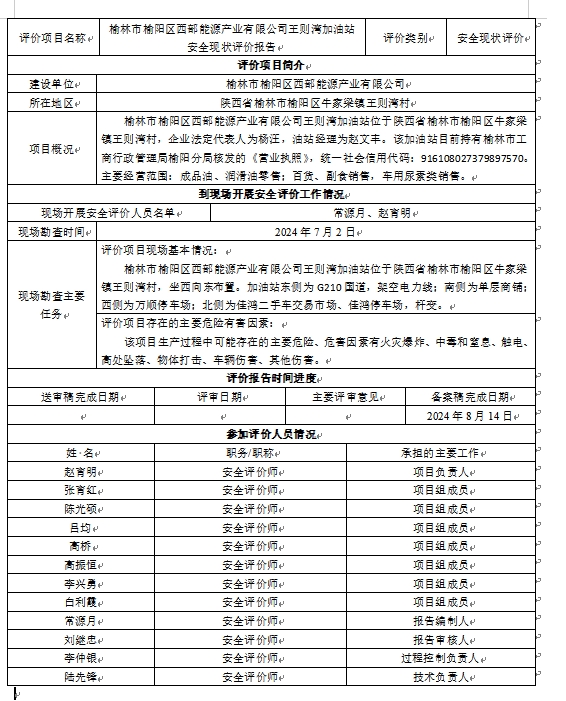 KLDAP[2024]-2.19 榆林市榆陽區(qū)西部能源產(chǎn)業(yè)有限公司王則灣加油站安全現(xiàn)狀評價報告