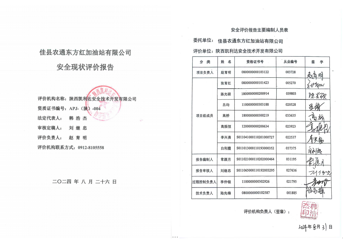 KLDAP[2024]-2.20 佳縣農(nóng)通東方紅加油站有限公司安全現(xiàn)狀評(píng)價(jià)報(bào)告