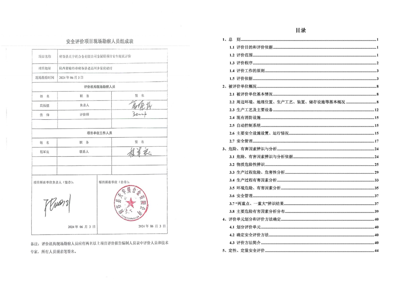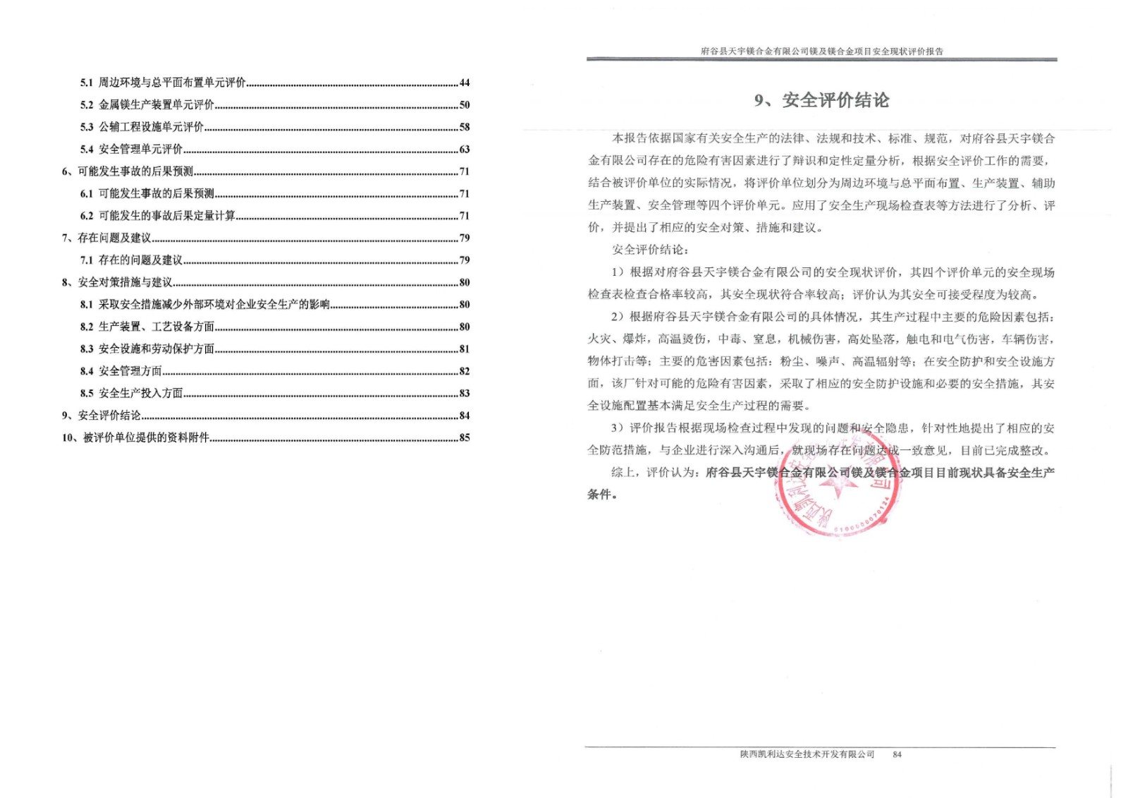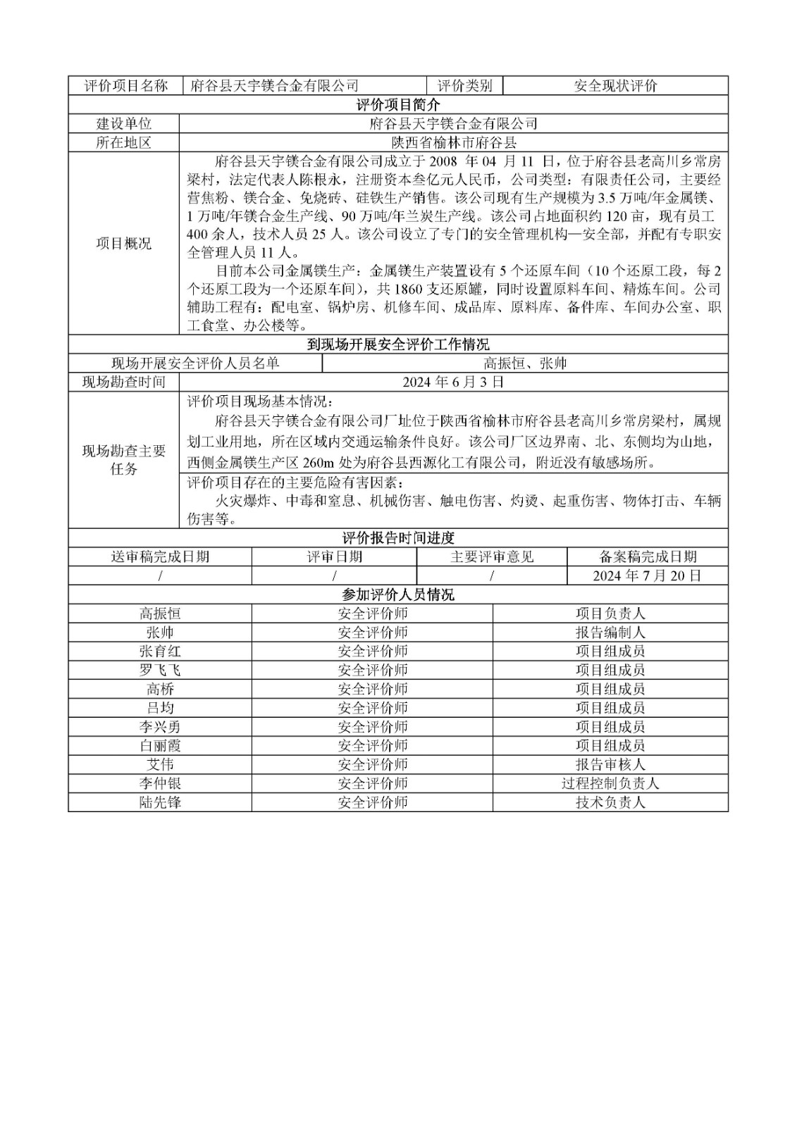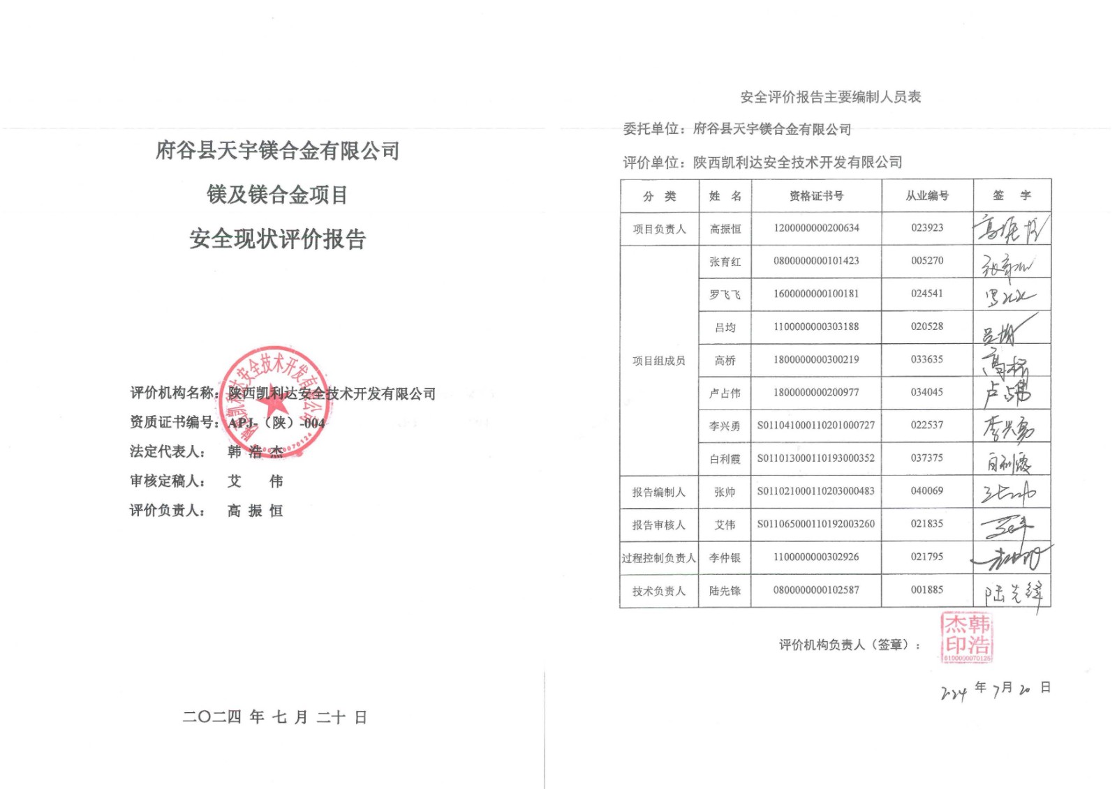 KLDAP[2024]-3.9府谷縣天宇鎂合金有限公司安全現狀評價