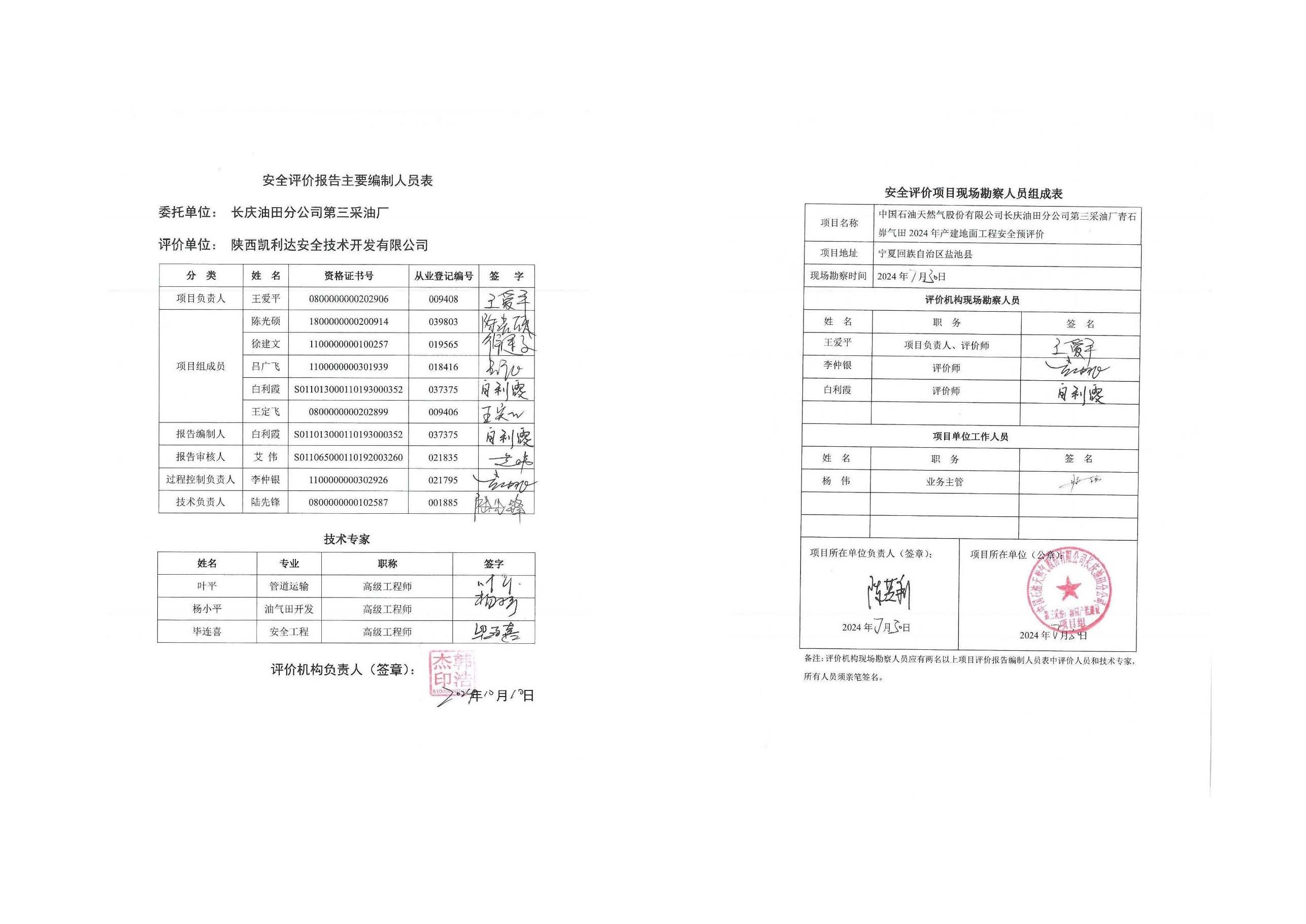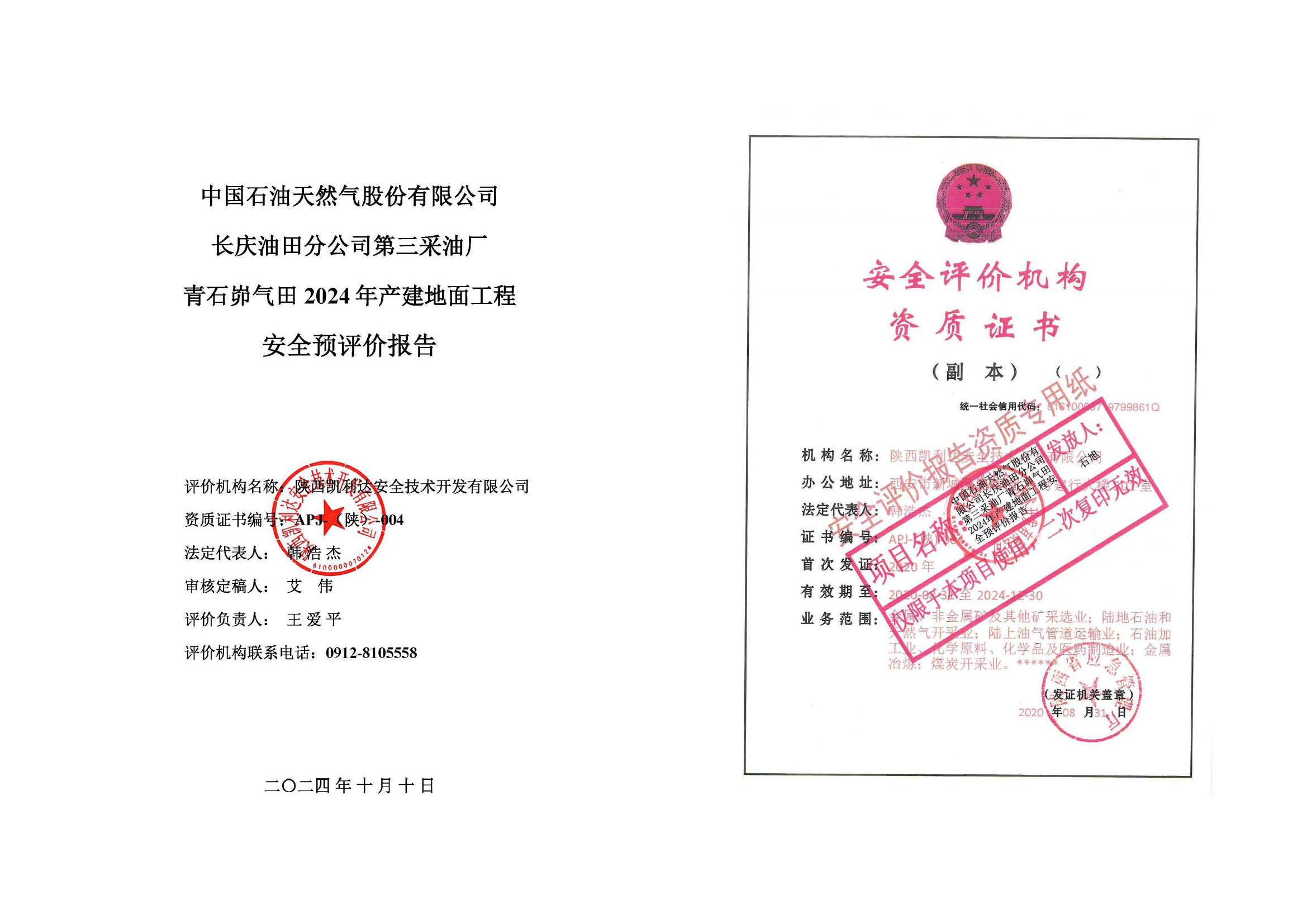 KLDAP[2024]-3.13長慶油田分公司第三采油廠青石峁氣田2024年產(chǎn)建地面工程安全預(yù)評價報告