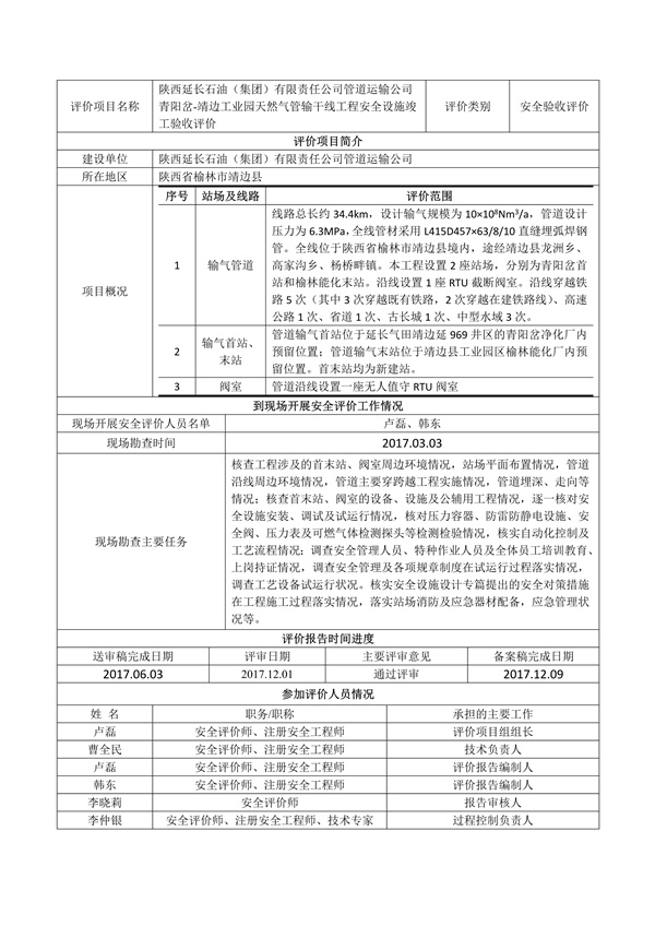 陜西延長石油(集團)有限責任公司青陽岔-靖邊工業(yè)園天然氣管輸