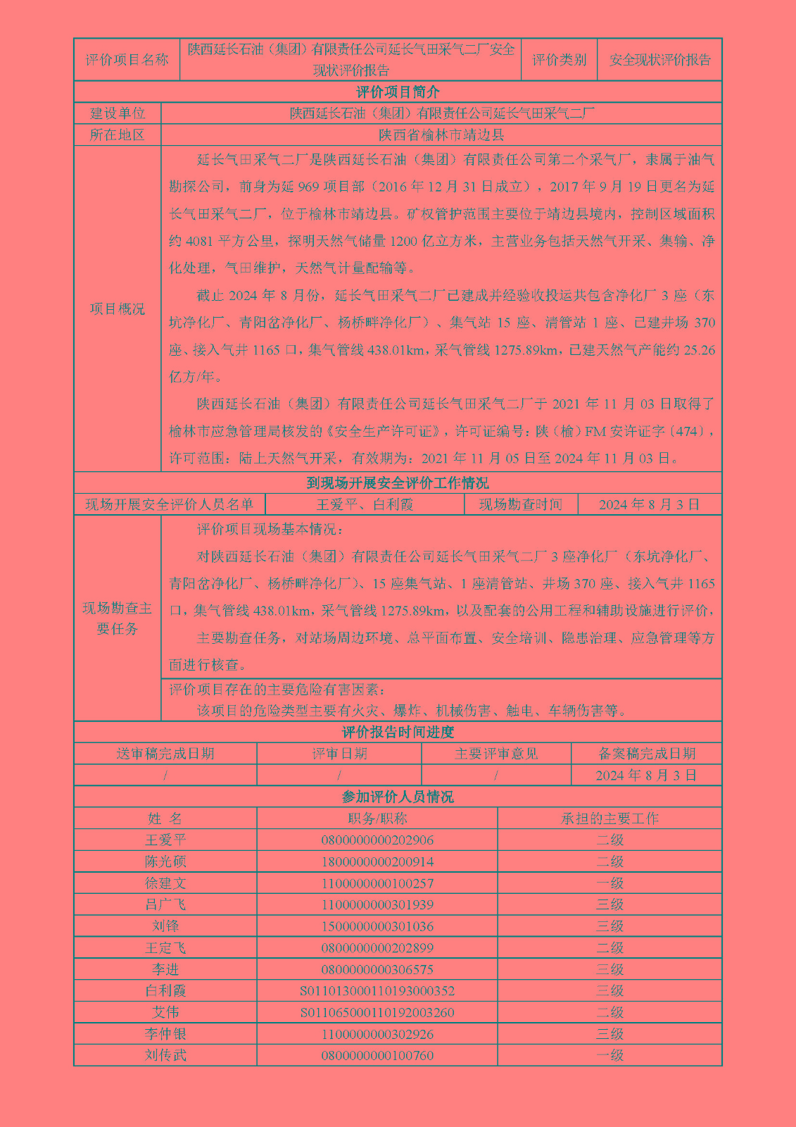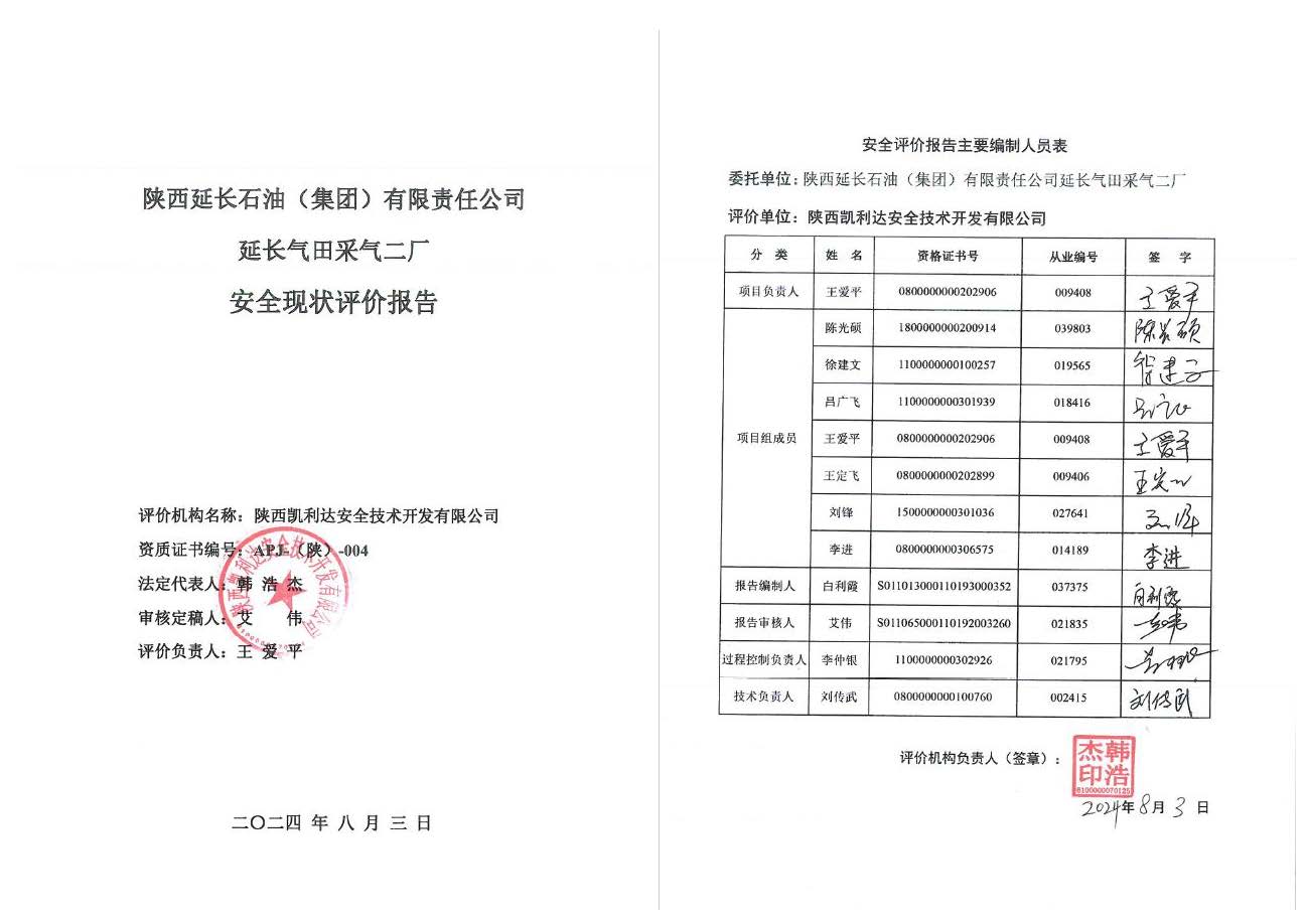 KLDAP[2024]-3.11陜西延長(zhǎng)石油(集團(tuán))有限責(zé)任公司延長(zhǎng)氣田采氣二廠安全現(xiàn)狀評(píng)價(jià)