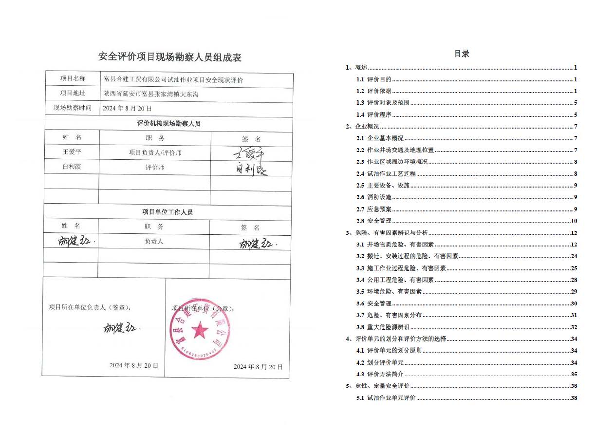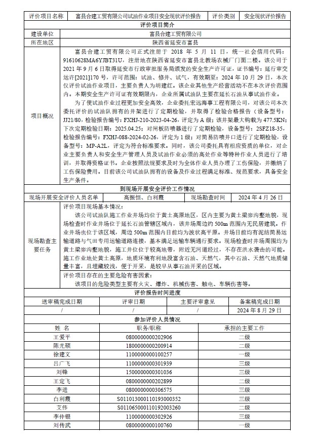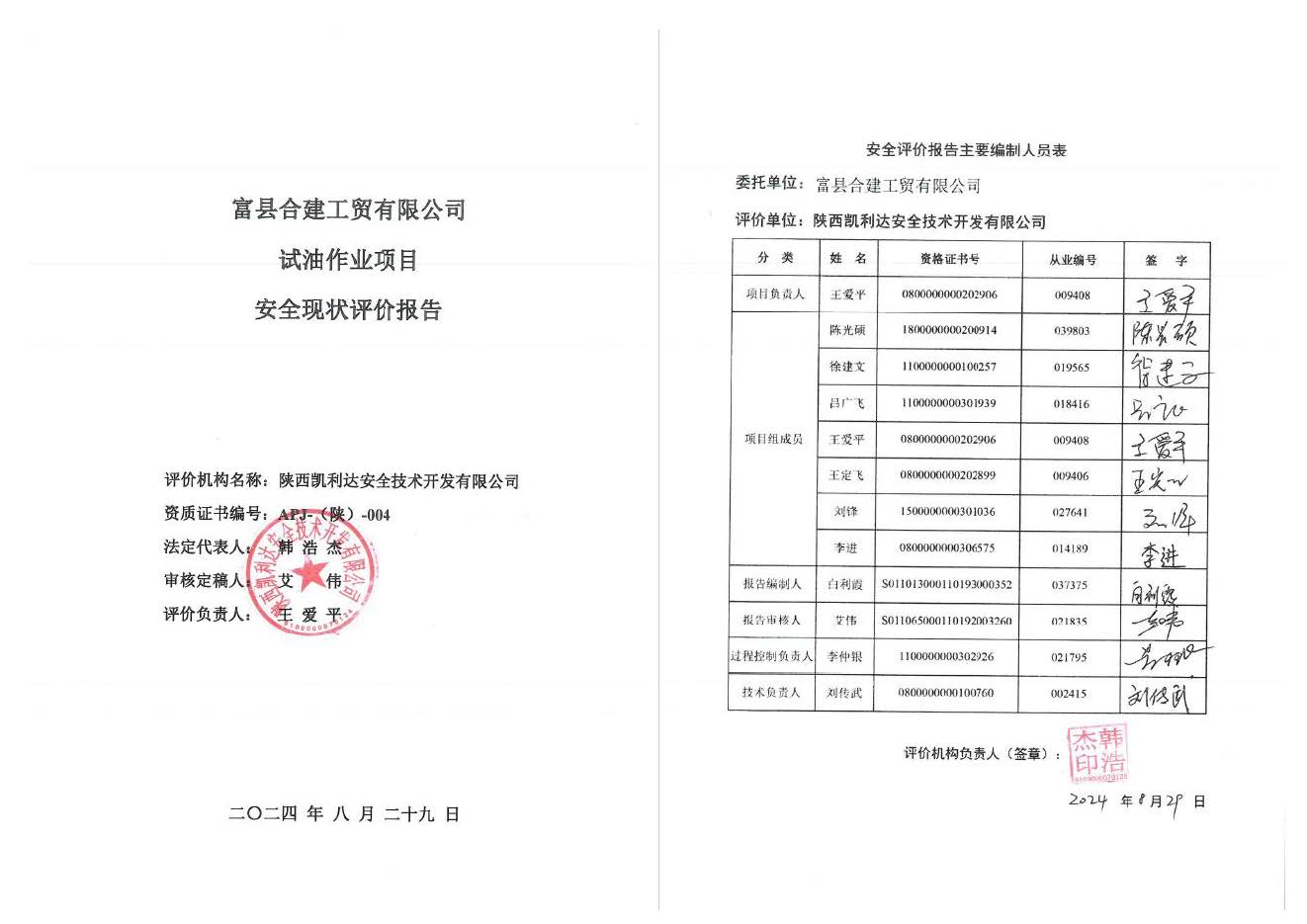 KLDAP[2024]-3.14富縣合建工貿(mào)有限公司試油作業(yè)項目安全現(xiàn)狀評價