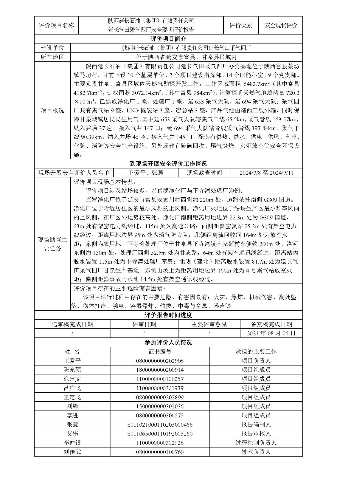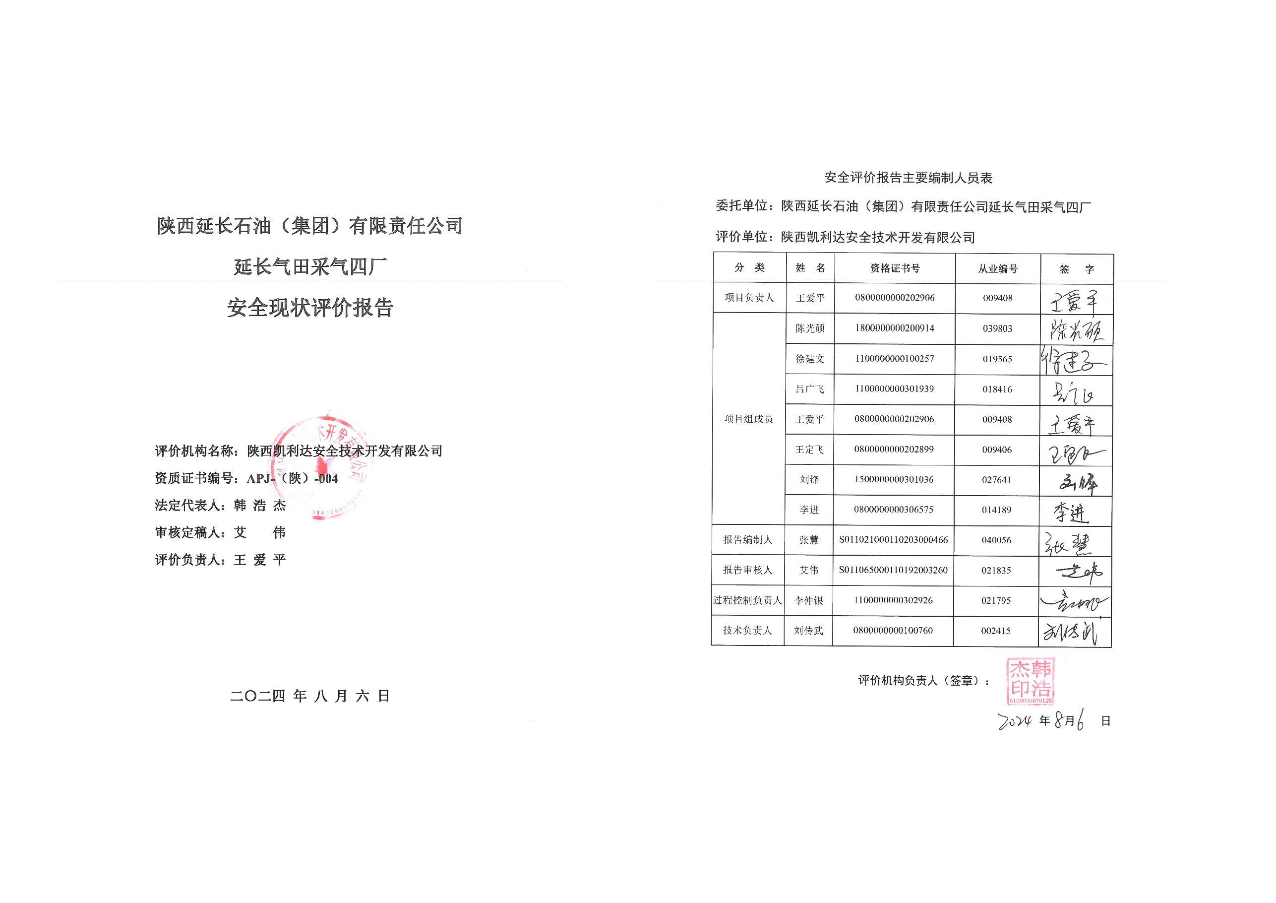KLDAP[2024]-3.12 延長(zhǎng)氣田采氣四廠安全現(xiàn)狀評(píng)價(jià)報(bào)告