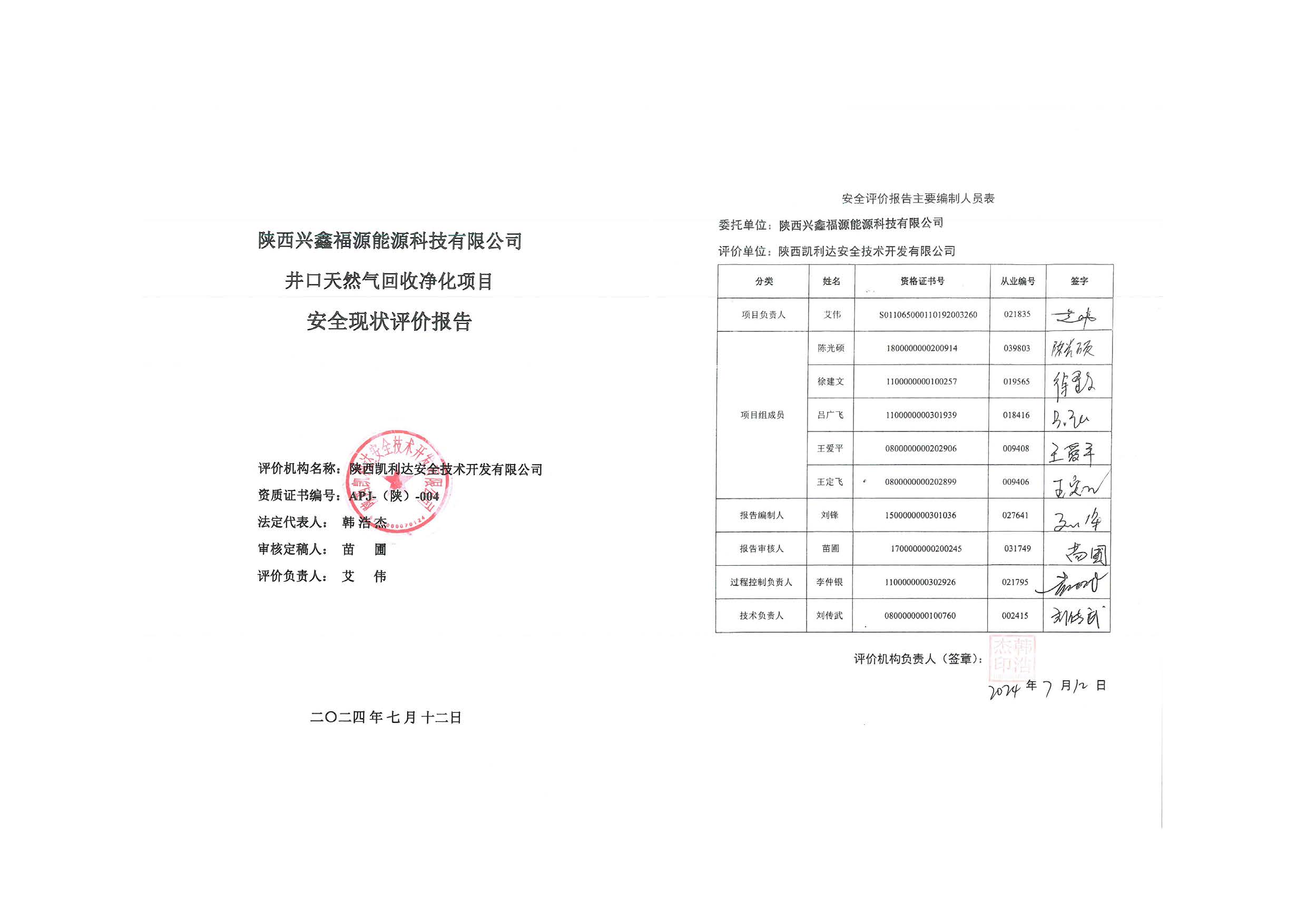 KLDAP[2024]-1.13陜西興鑫福源能源科技有限公司井口天然氣回收凈化項目安全現(xiàn)狀評價報告