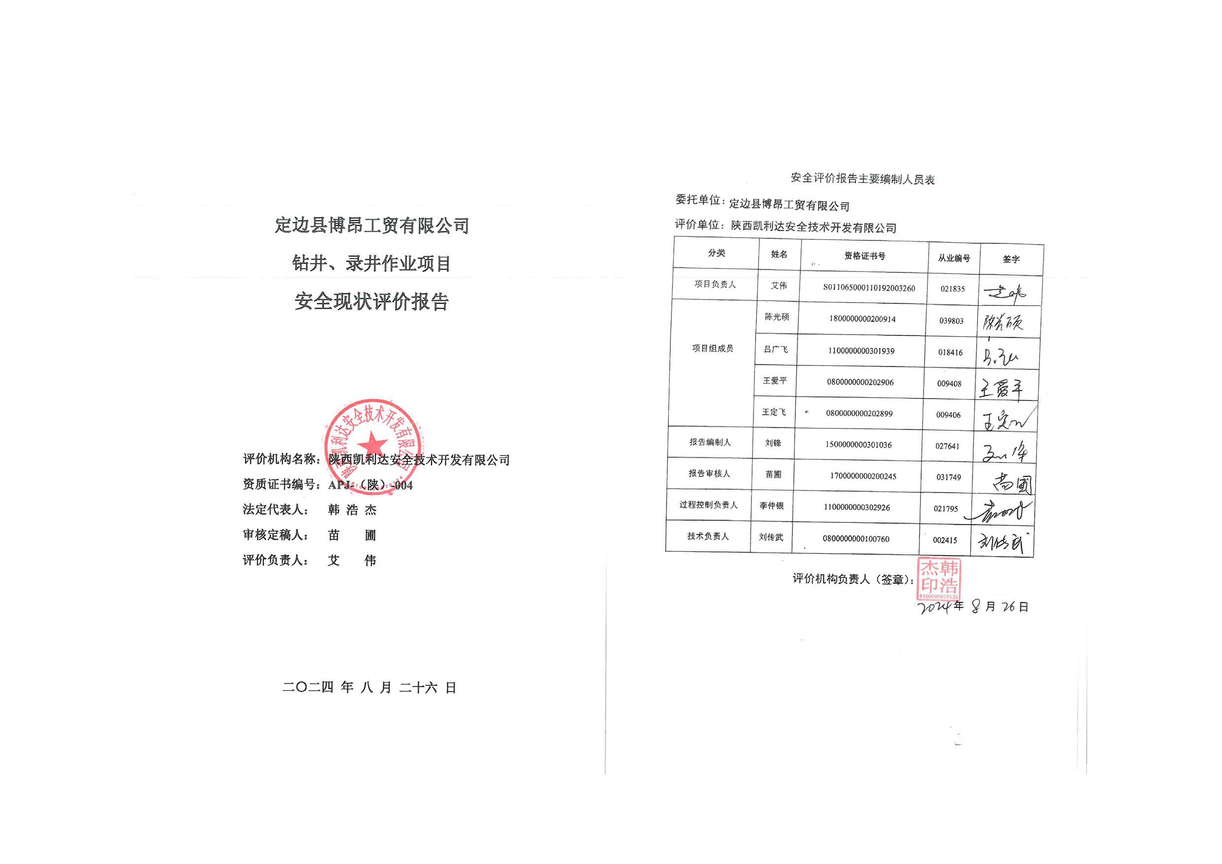 KLDAP[2024]-1.17定邊縣博昂工貿(mào)有限公司鉆井、錄井作業(yè)項目安全現(xiàn)狀評價報告