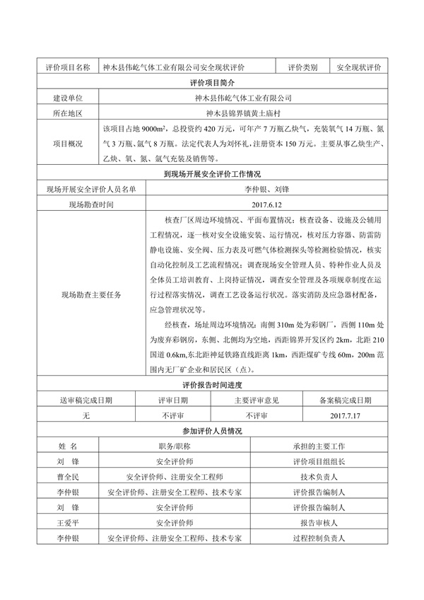 神木縣偉屹氣體工業(yè)有限公司安全現(xiàn)狀評價