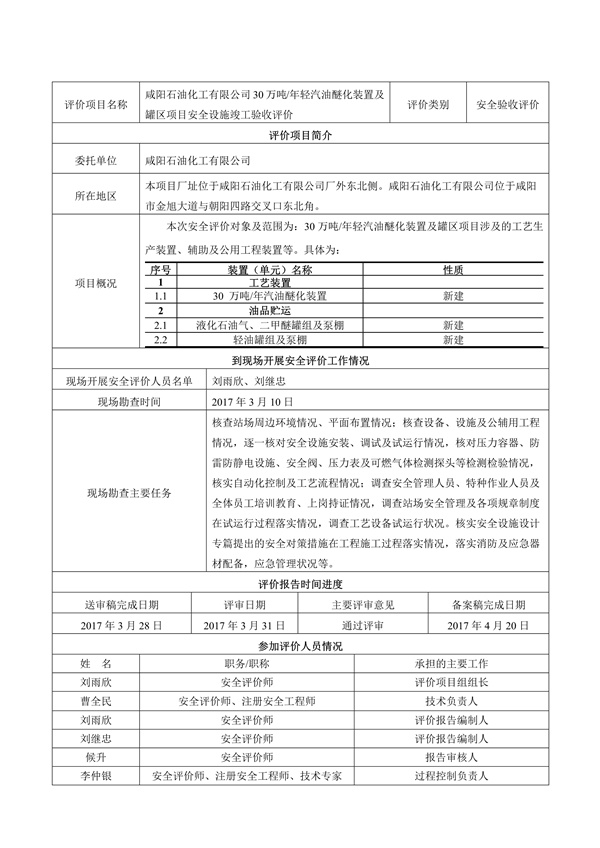 咸陽石油化工有限公司30萬噸年輕汽油醚化裝置及罐區(qū)項目安全設(shè)施