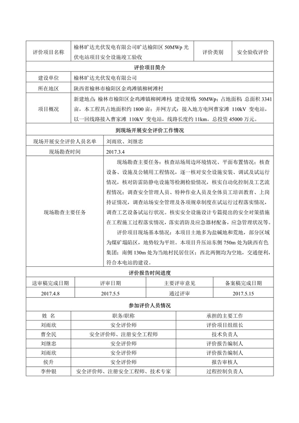 榆林曠達光伏發(fā)電有限公司曠達榆林區(qū)50MWp光伏電站項目安全設(shè)施